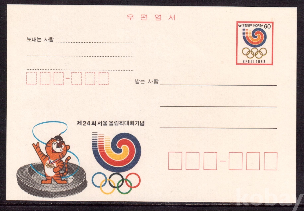 (서울올림픽) 1988 .9.16 제24회 서울올림픽대회기념 엽서 (60원) 미사용