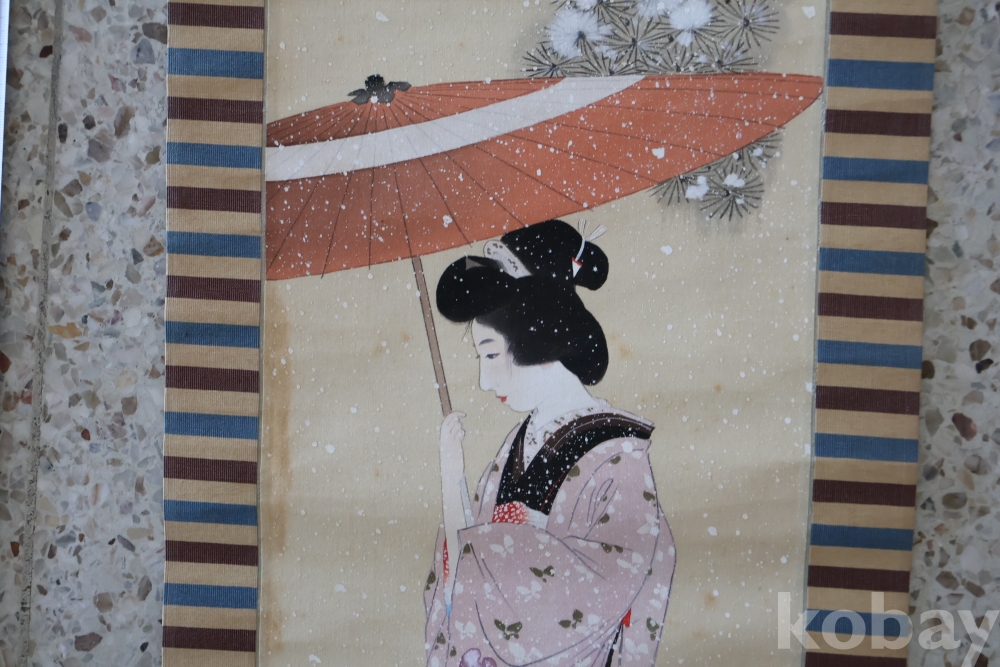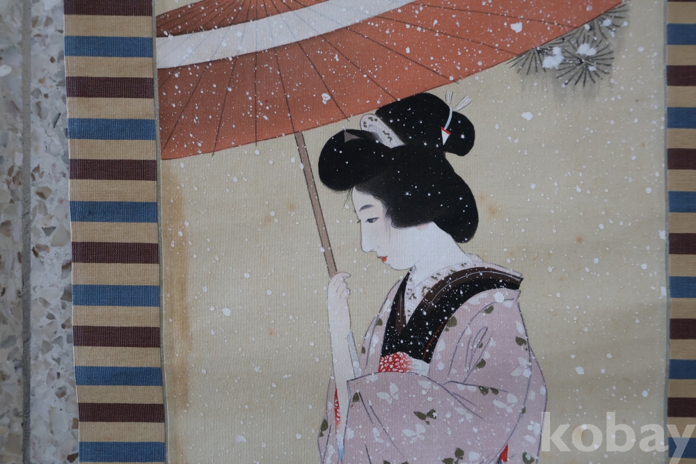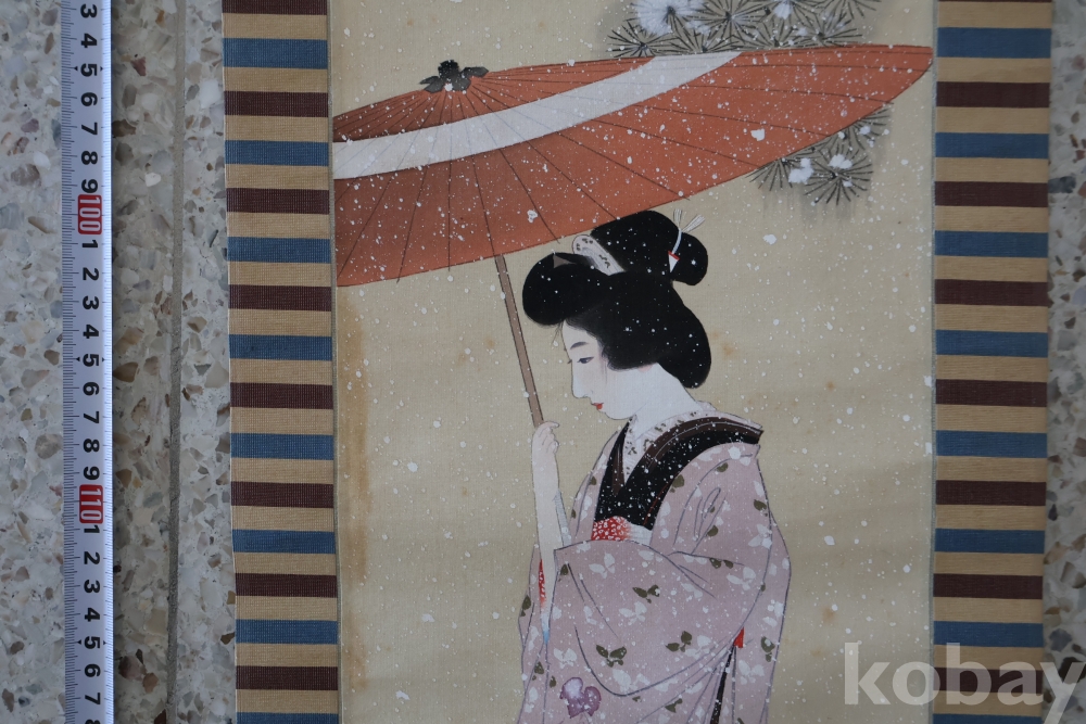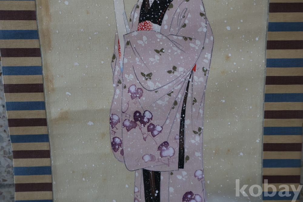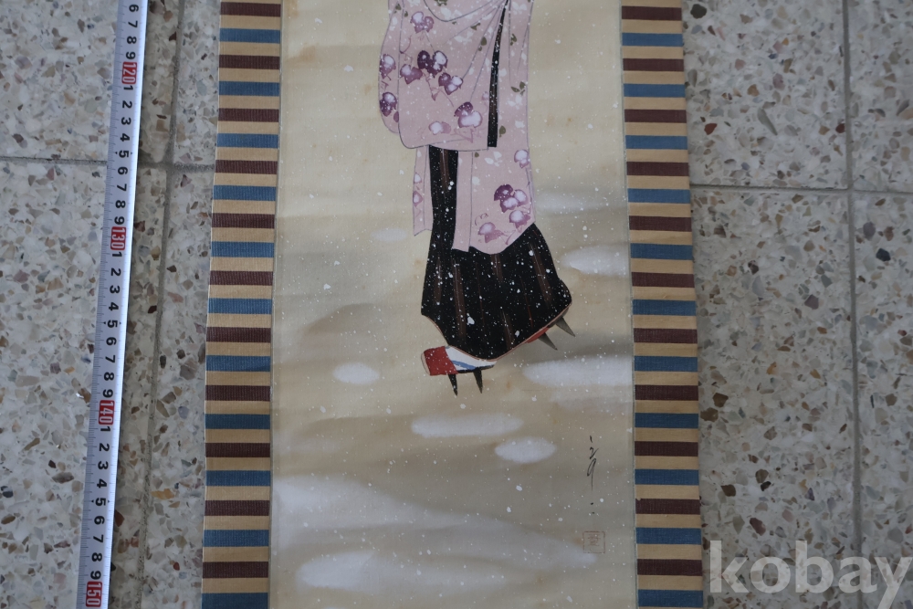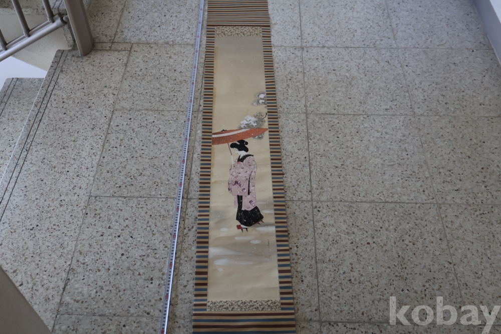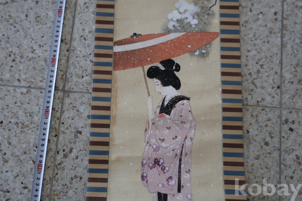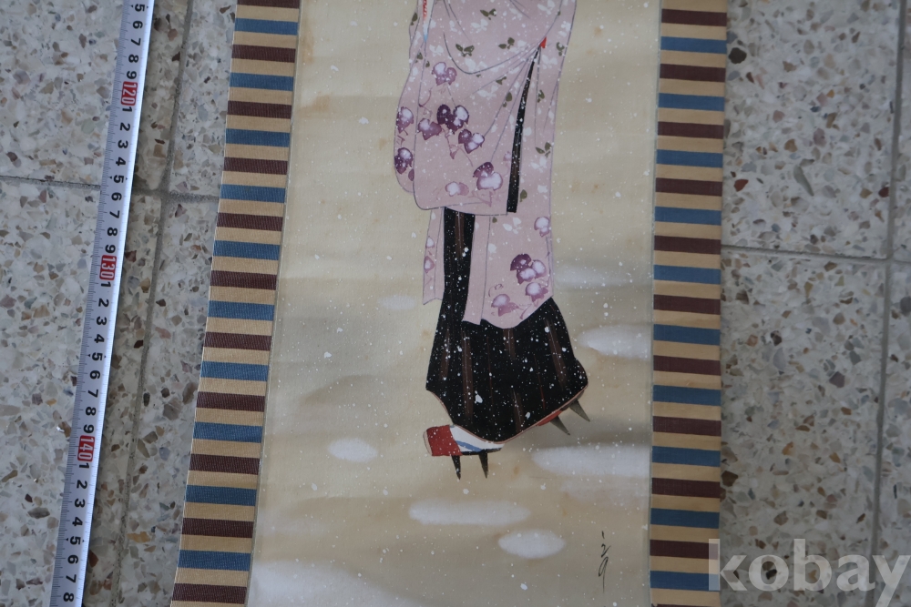 아스라한 분위기를 가진 일본 여인 임니다 멋진 디자인 색감 등등 당대의 명화 임니다 세월의 흔적을 가진 여운을 가진 명화 임니다 전체 길이는 184