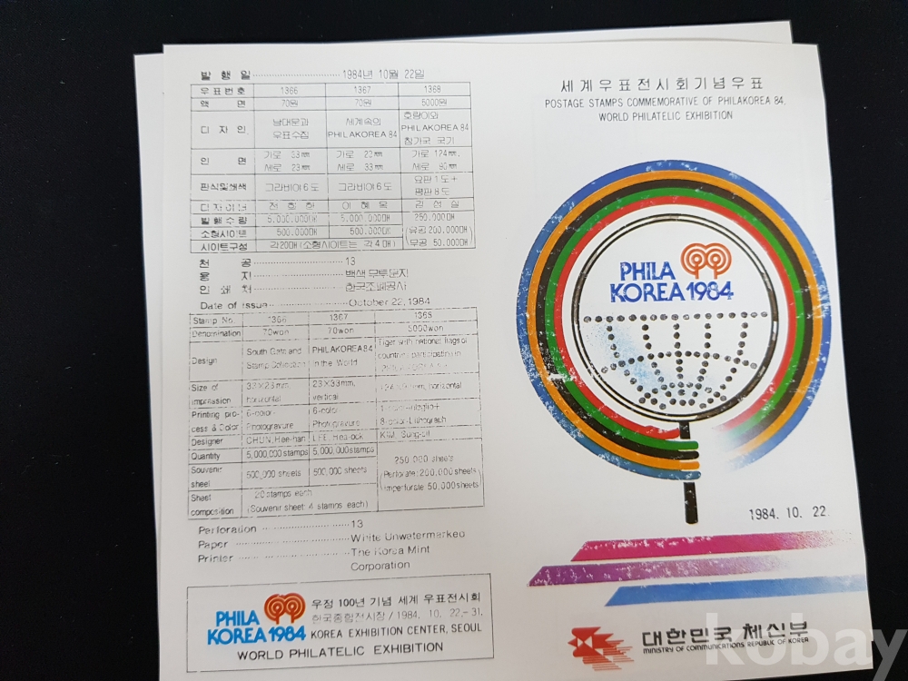 - 1984년 세계우표전시회 기념 전지, 시트, 안내카드 등