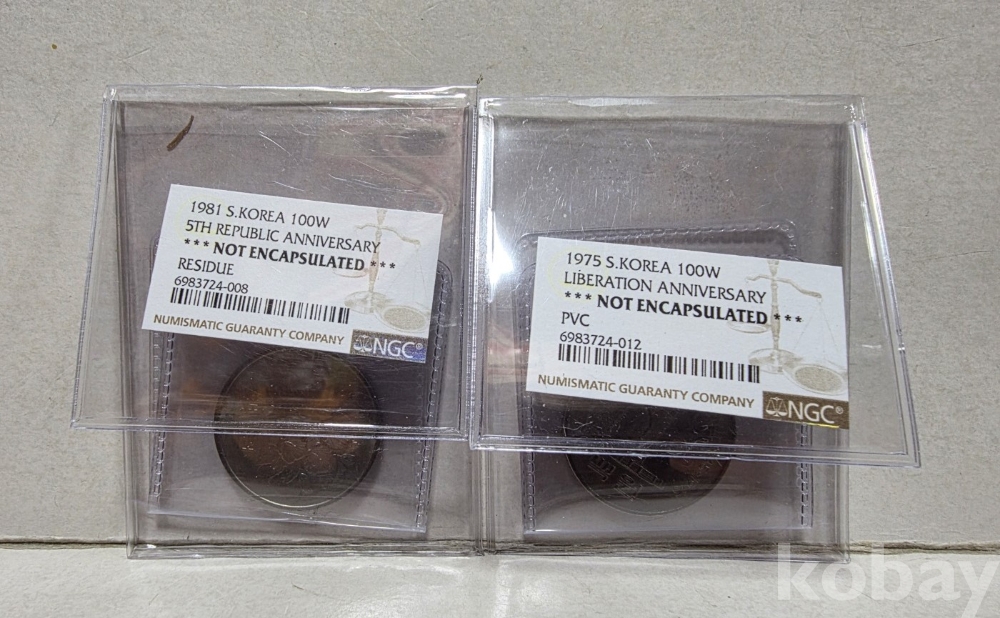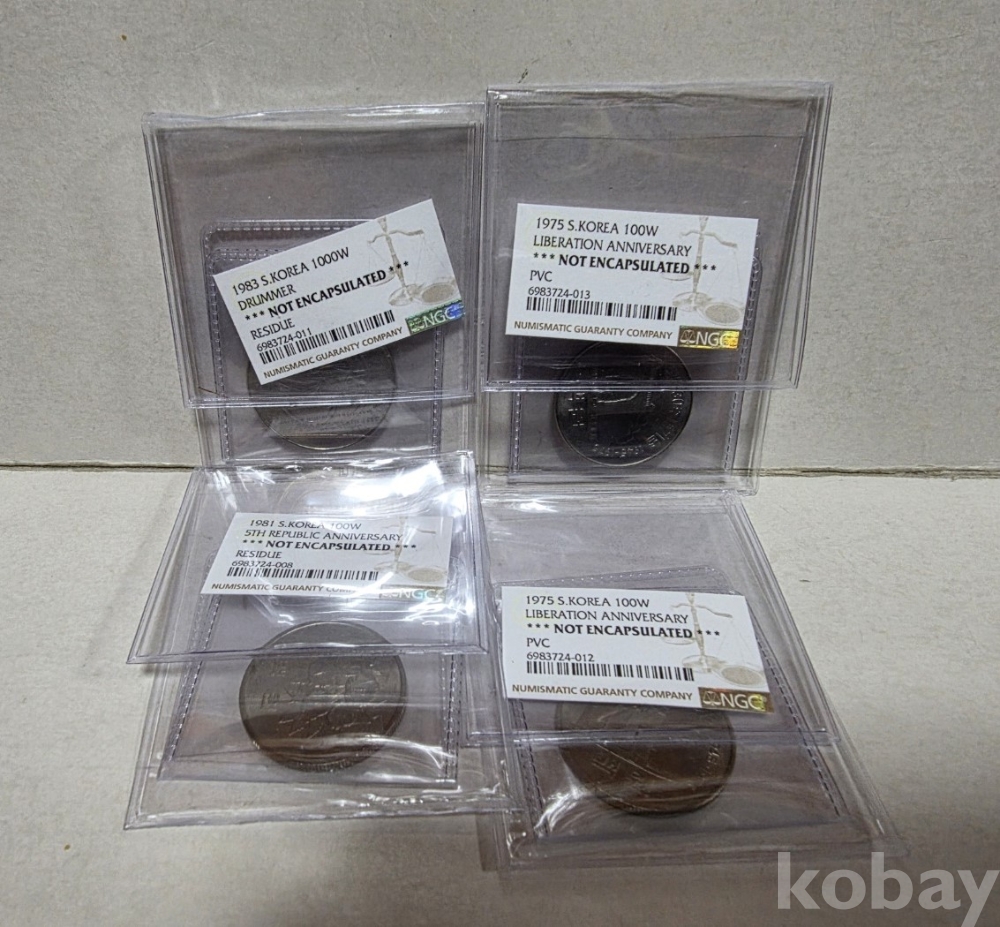 -대한민국 각종 기념주화 4종이며 NGC 그레이딩 보냈으나 등급 못받고 돌아온 주화 입니다.