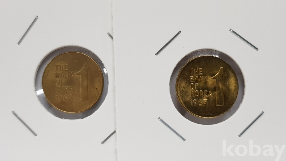 *천원경매* 미사용 준특년도 1967년 1원 / 1주 2점 일괄 [ 화폐 / 주화 / 한국은행 / 현행주화 ] #15(주)-0226 #CO #HH