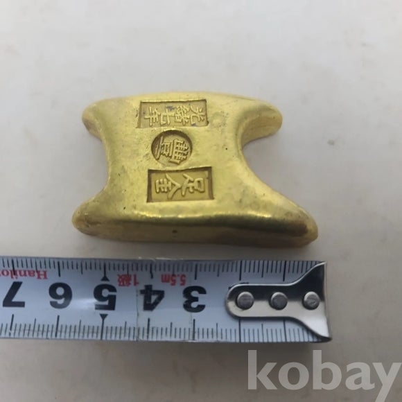 다양한 한자와 문양이 압인된 금자 덩어리 입니다 화폐가 발달하기전 마제은이나 금자 덩어리로 화폐를 대용했다고 합니다. 진품 금자 덩어리는 아닌것으로 보입니다 재미있는 화폐 소품으로 보입니다. 속이 꽉차있어 상당히 묵직합니다.수집하셔서 좋은 기운 많이 받으세요.