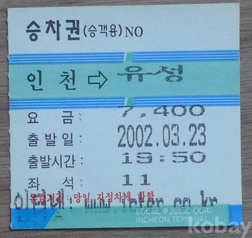 인천 - 유성 고속버스 승차권