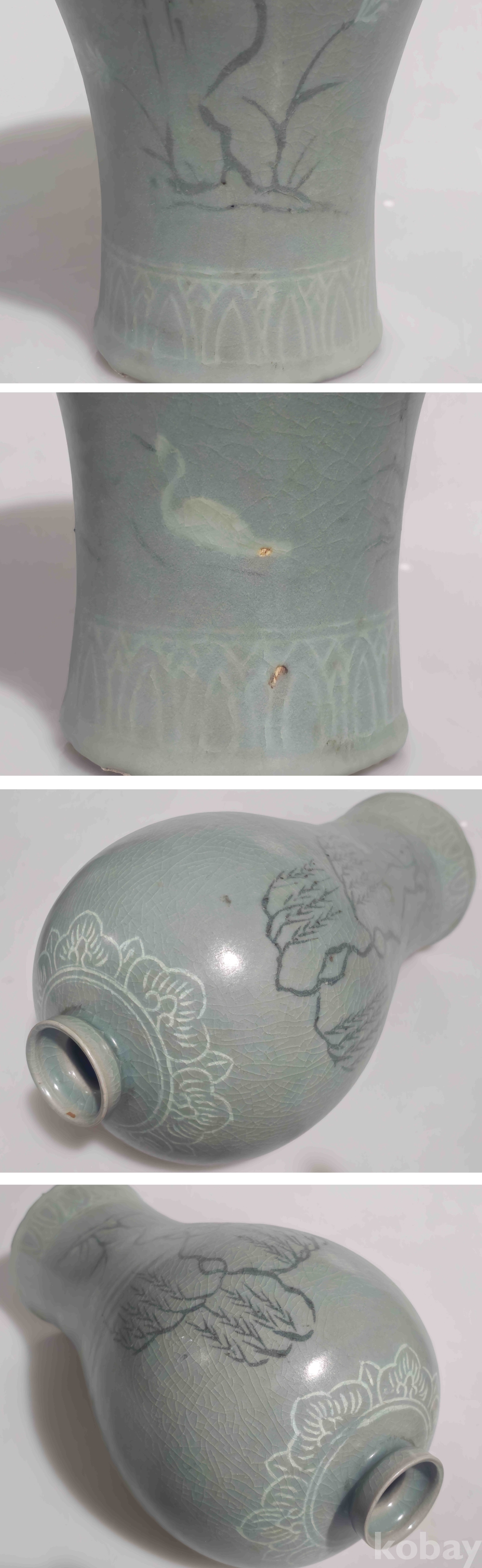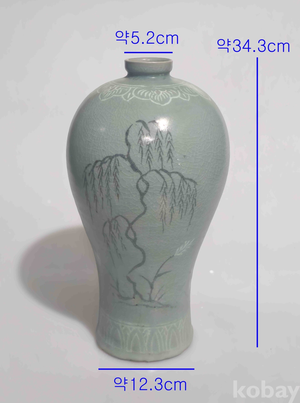 상품 설명 | 연대감 좋은 청자 흑백상감 포류문 매병입니다. 상태 양호 합니다. 흑백상감으로 포류문을 시문하여 기물의 격을 높였습니다. 참고로 사진은 확대한 상태이며 설명 못한 부분은 사진으로 대체합니다. 흔한 기물이 아니기에 소장의 가치가 높습니다. | ||