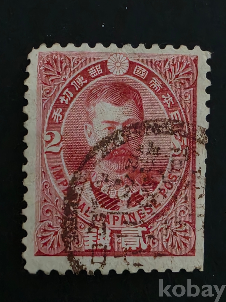 일본 초기 우표. 1896년 클래식 우표. 일본 메이지 시대 천왕 초상.