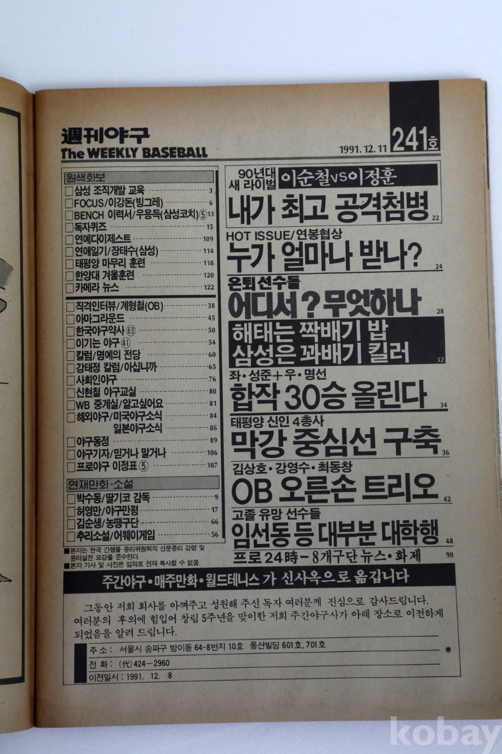 야구잡지 주간야구 해태 이순철 빙그레 이정훈 선수 표지 4