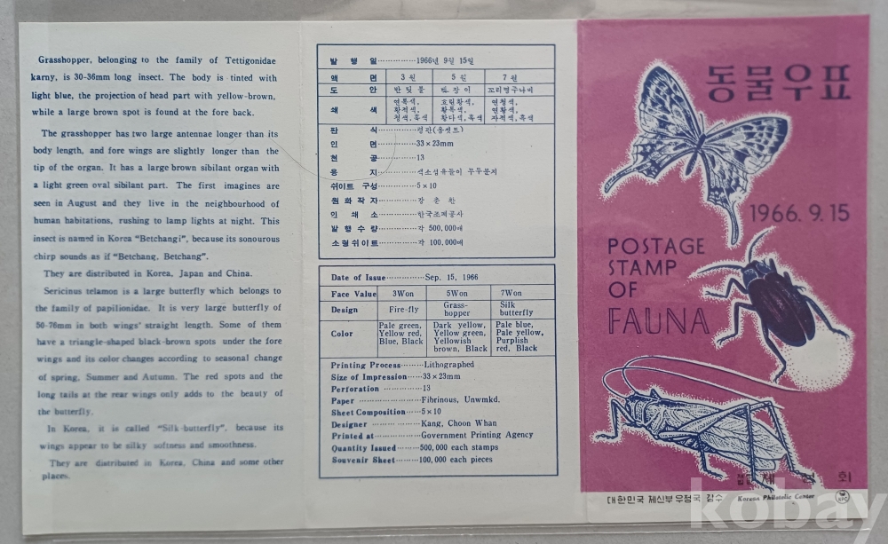 1966년 동물시리즈 4집 12종 명판 우표