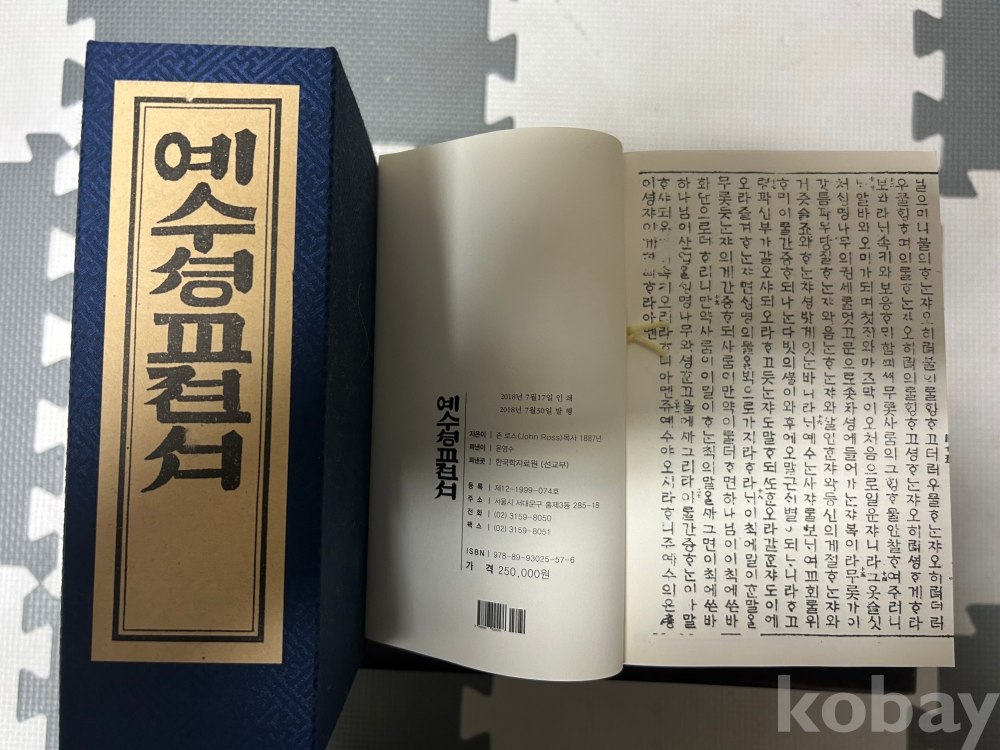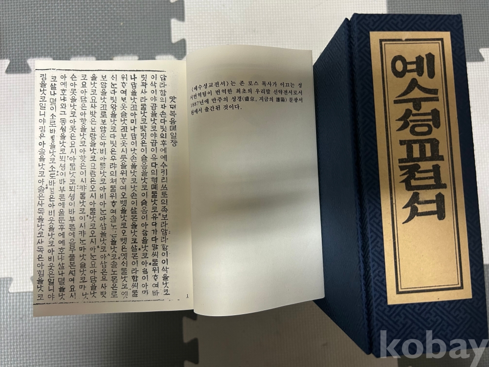 집 정리하며 수집했던 1887년 우리말로 된 최초 성경책으로 겹장으로 영인한 복각본입니다. 비록 영인본이지만 문화재 669호 원본을 바탕으로 마태복음부터 요한 계시록까지 신약 전권을 성실히 수록하고 제작된 희소한 성경책입니다