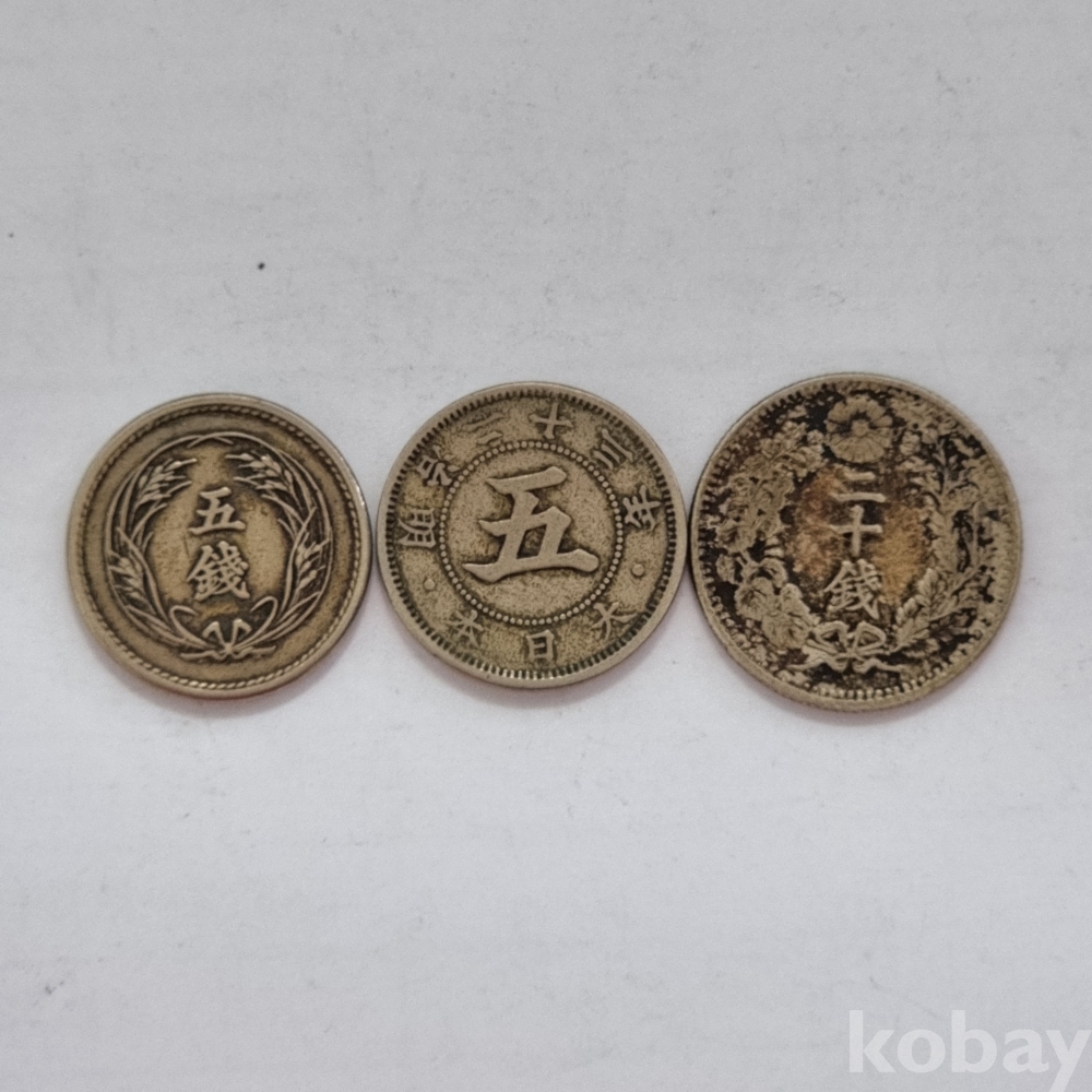 명치 23년 오전, 31년 5전, 32년 20전 은화 3개입니다.
