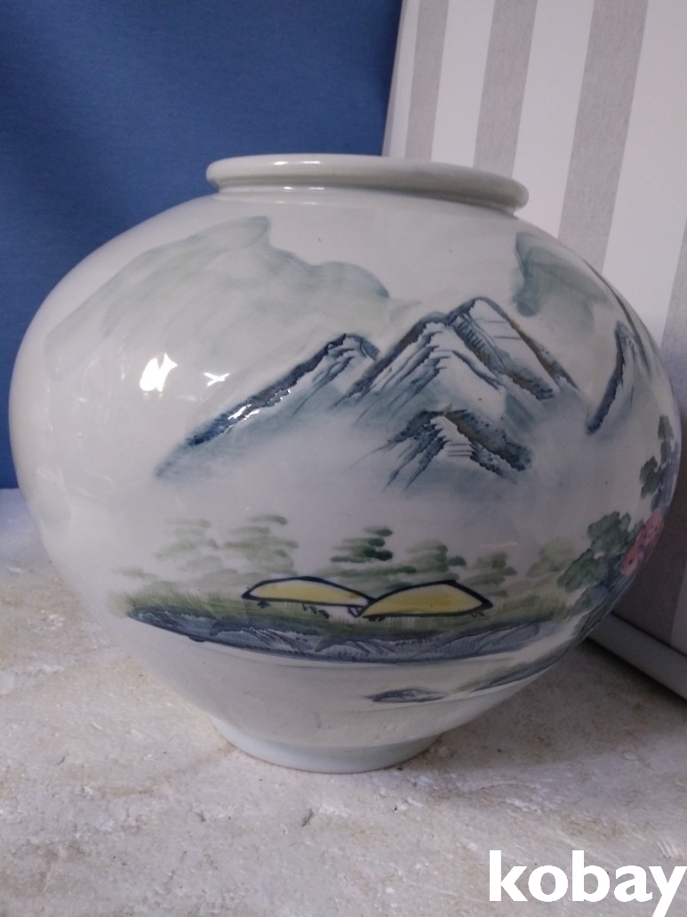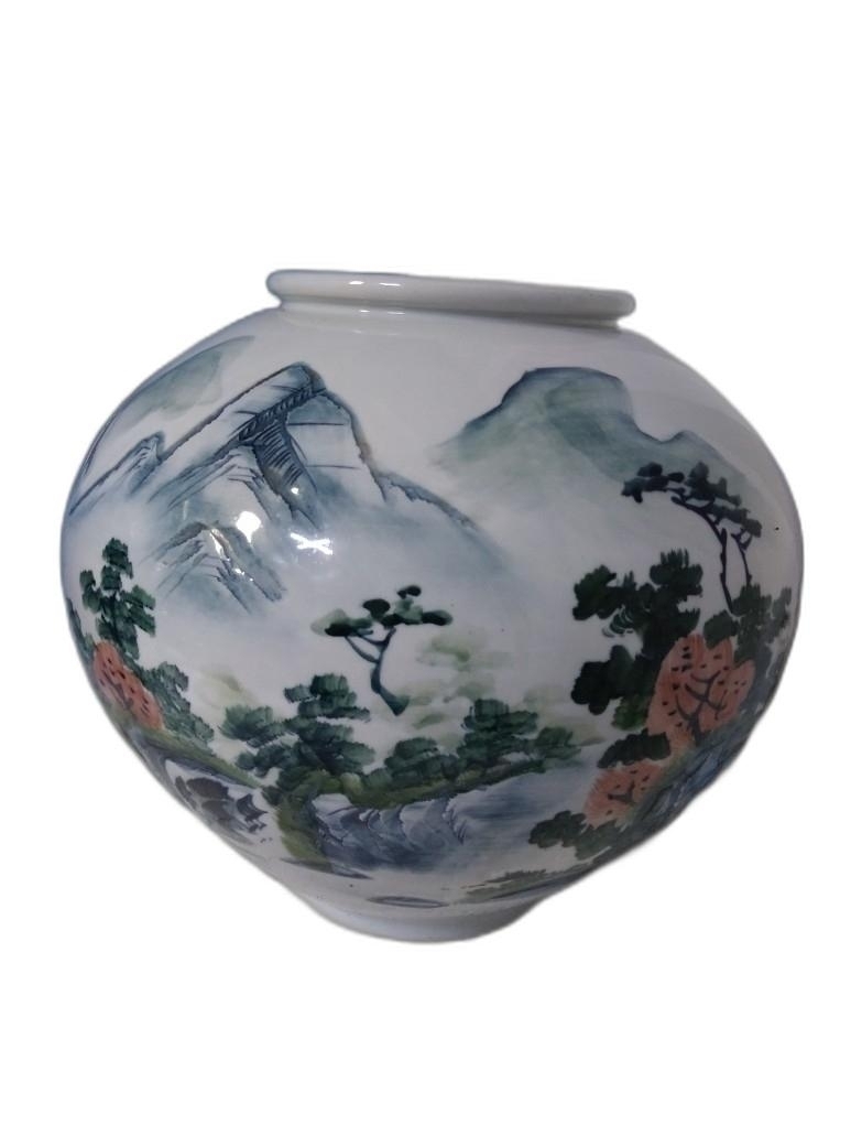 산수풍경이 아름답게 표현된 도자기 입니다.
