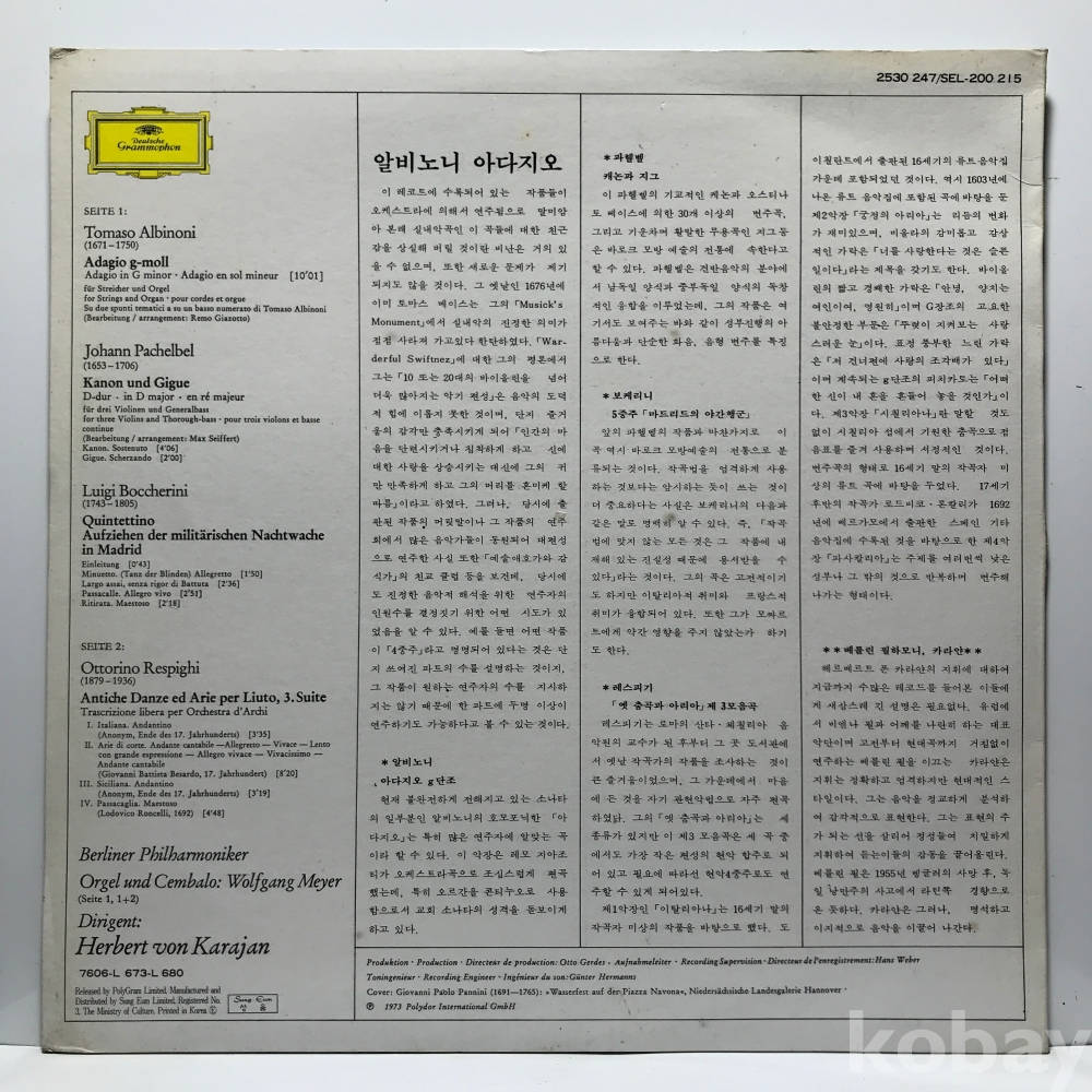 LP 85,000-80 Herbert von Karajan - ADAGIO . 자켓 EX+ 알판 EX 89 년 국내반