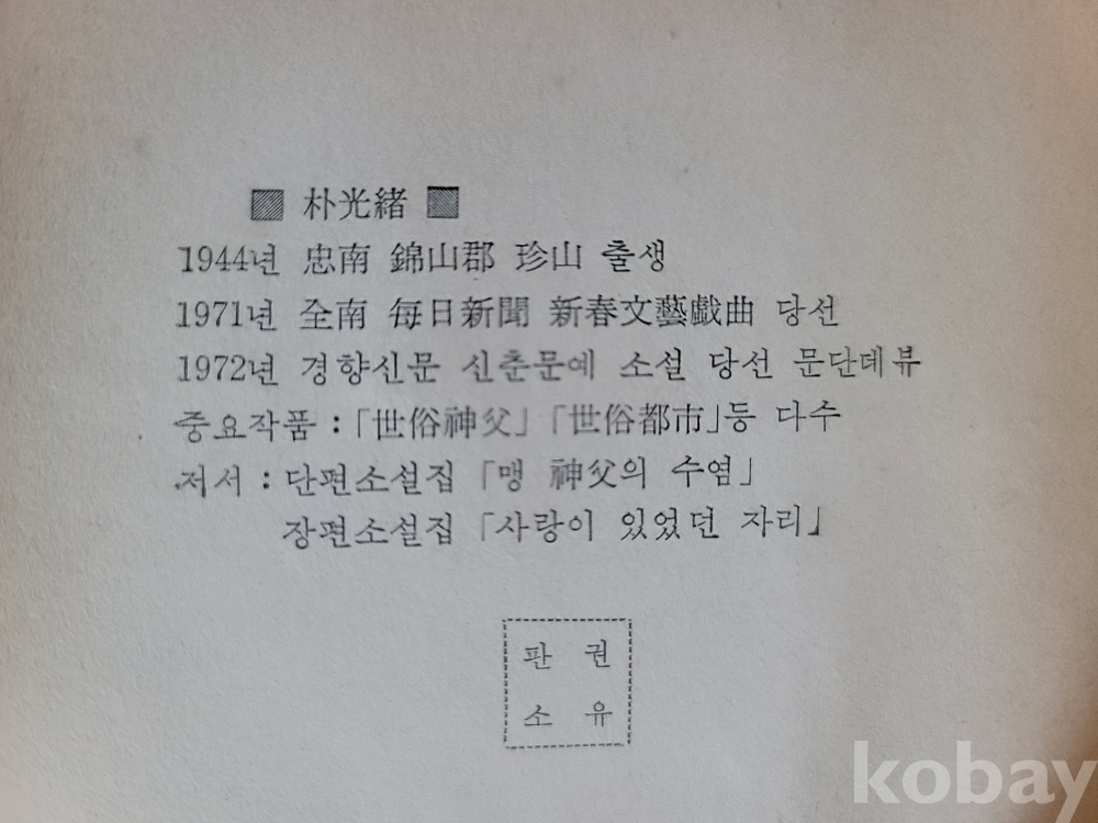 박광서(충청남도 금산: 1944) 장편소설.