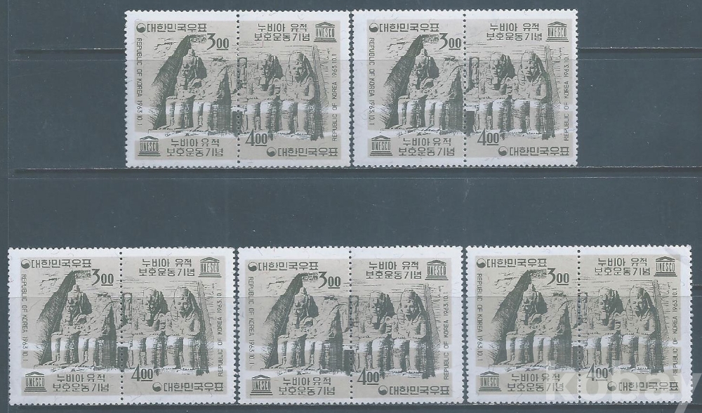 (한국우표-11)1963년누비아유적보호2연쇄5셋트(미사용제)-MNH, VF