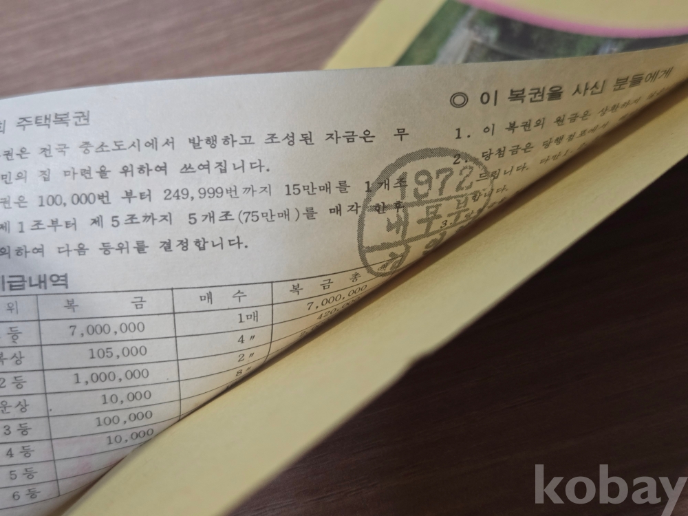 <투킴스> 희귀품, 1972년 49회 주택복권 견양권, 당첨번호 미표기에러권