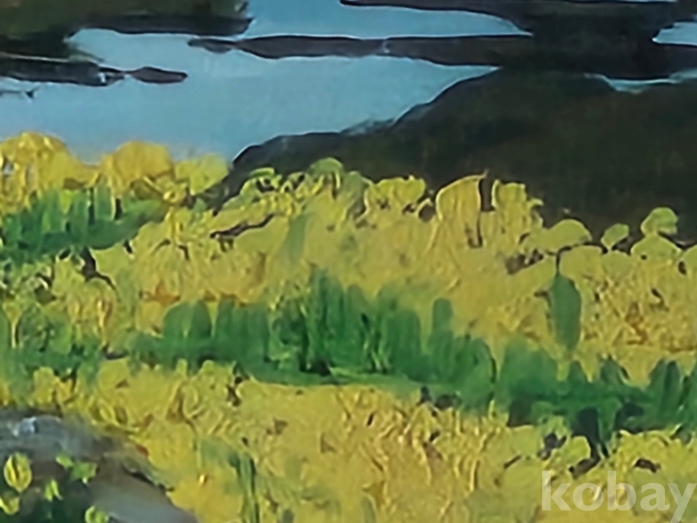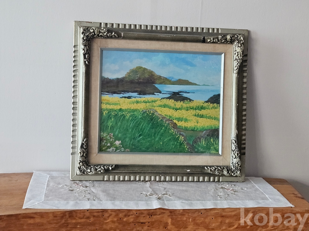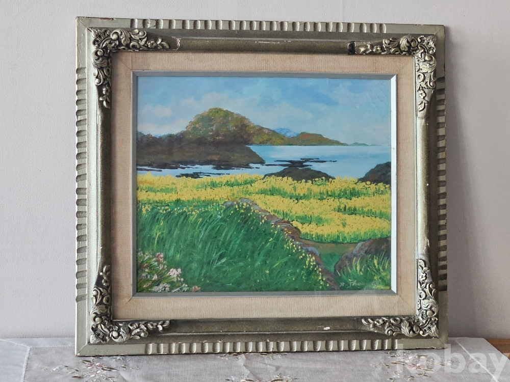 정말 잘 그린 해안가의 유채꽃 풍경입니다.