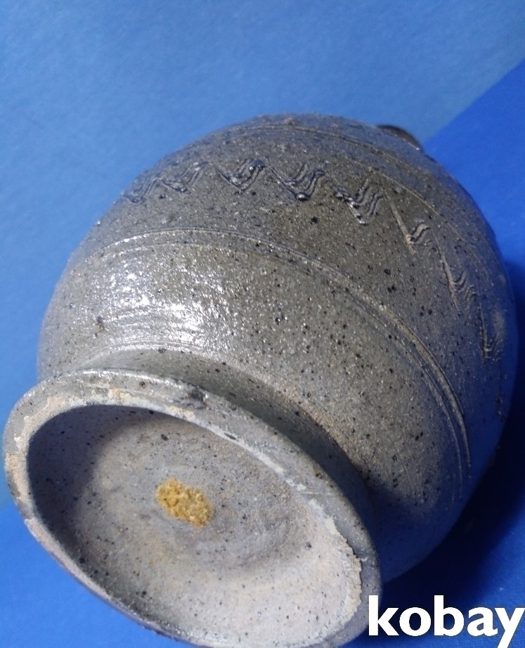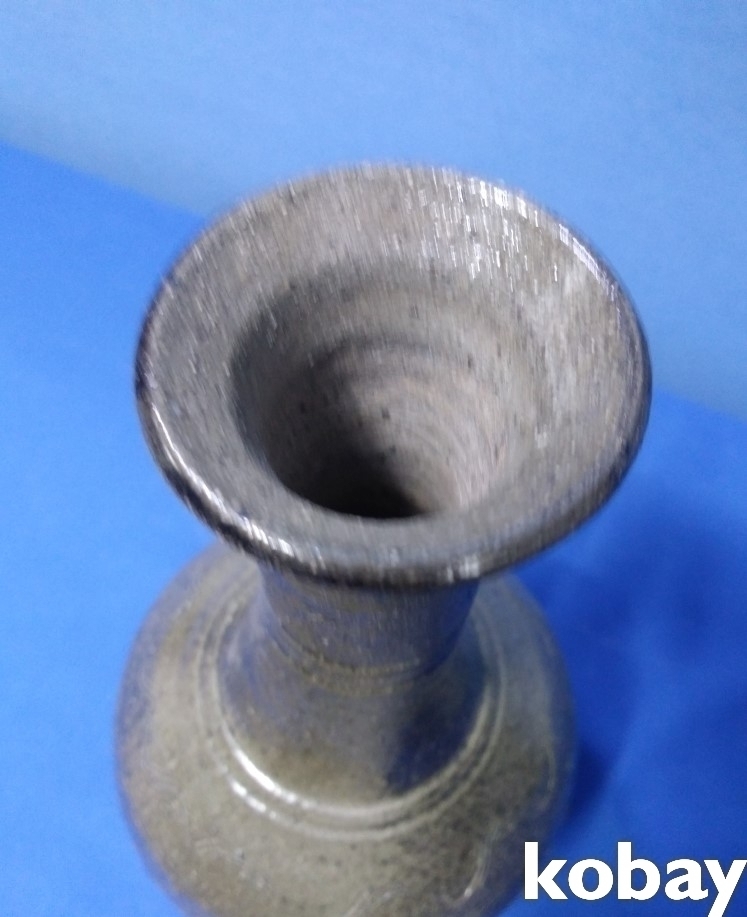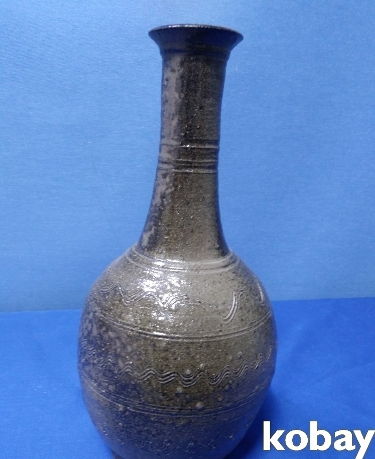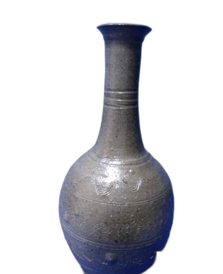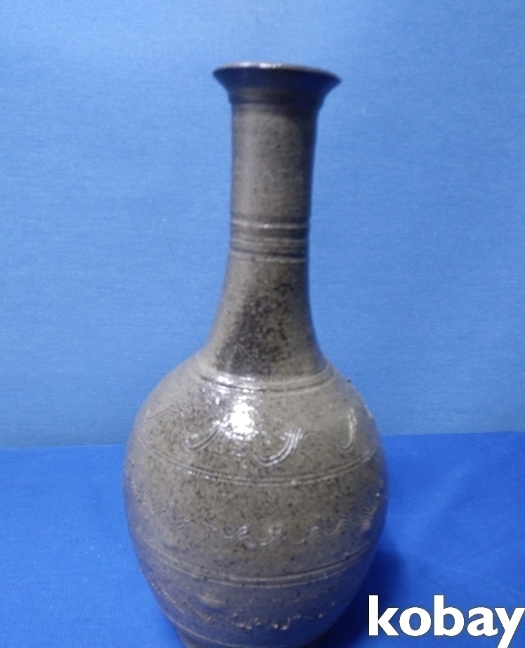 문양이 음각으로 있는 목긴 도자기 입니다.