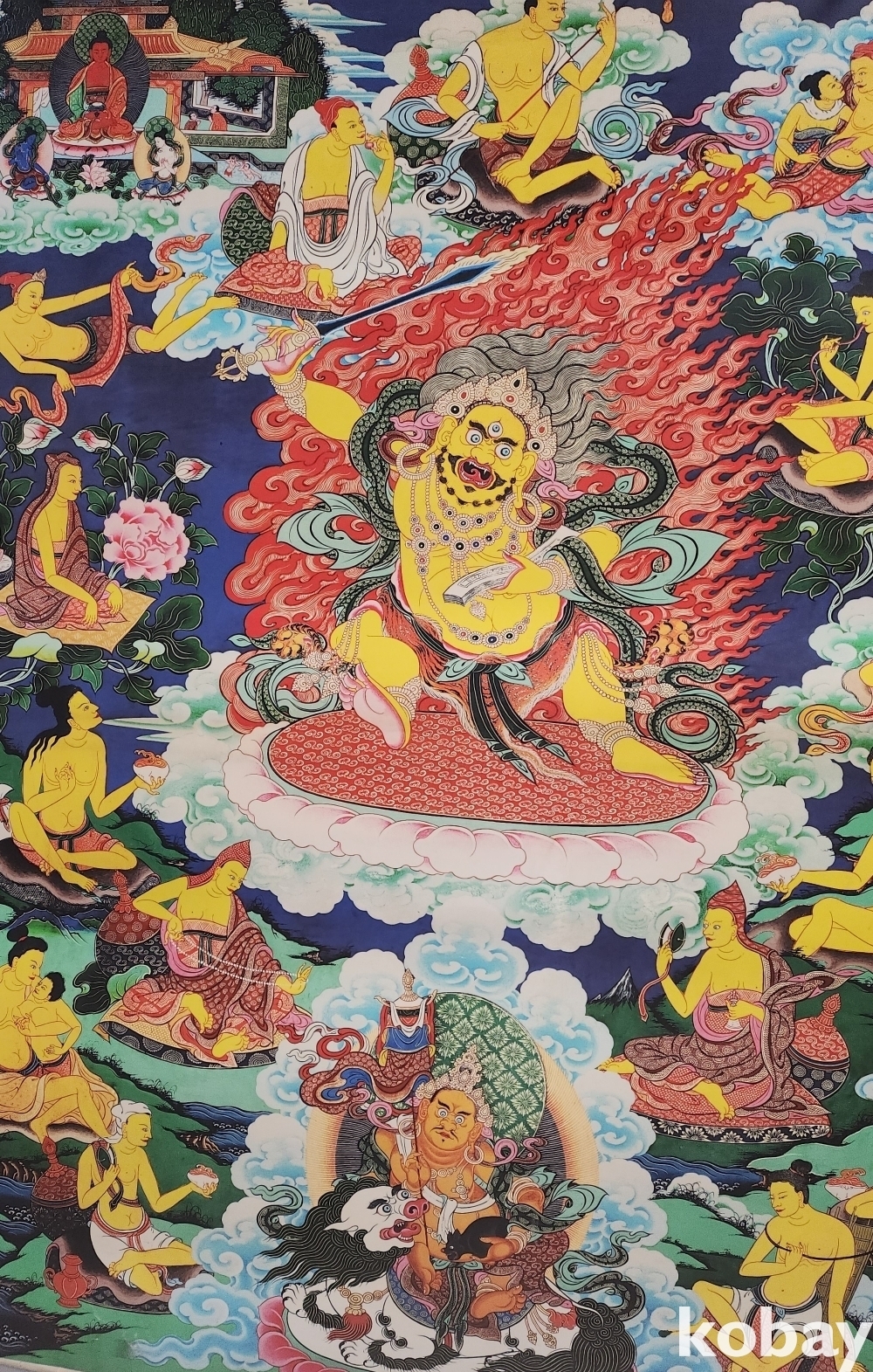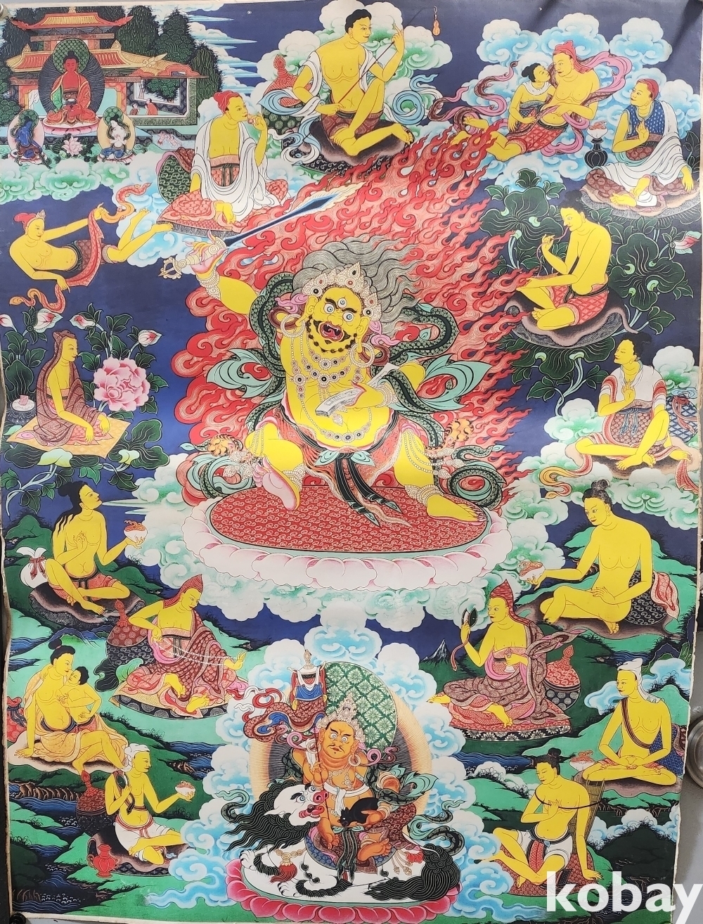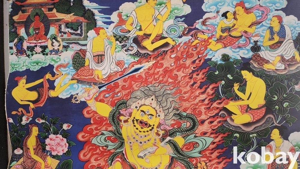 비단에 당채로 채색된 불교용품인 불화(佛畵)입니다,