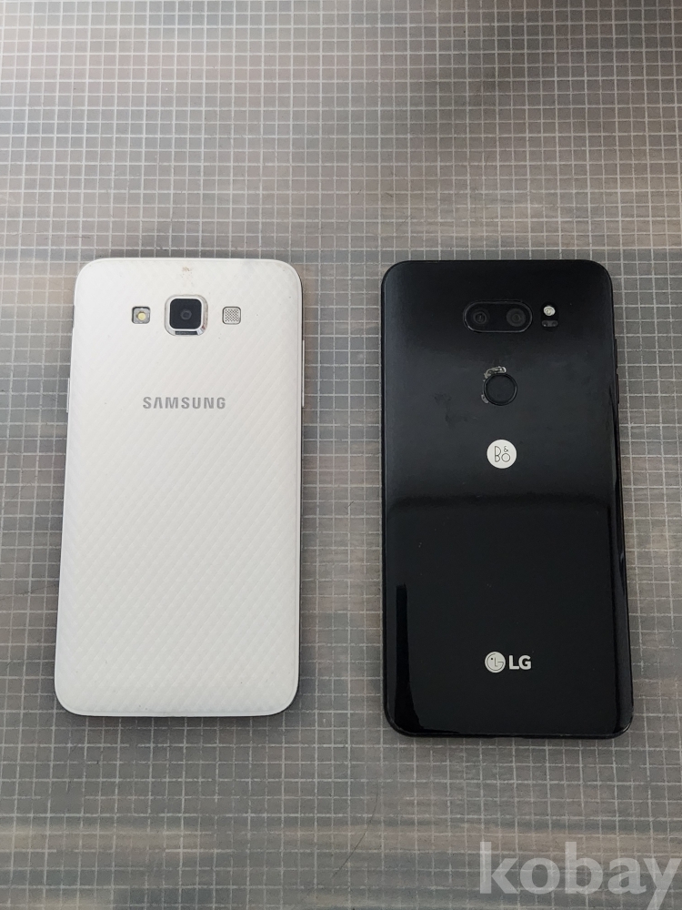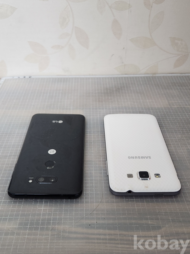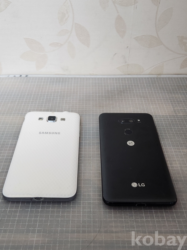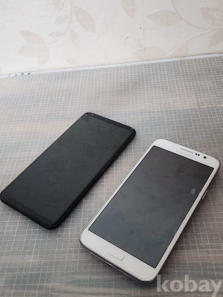 (땡처리) 삼성 갤럭시 J 시리즈 흰색 모델과 LG 스마트폰 검정색 모델입니다
