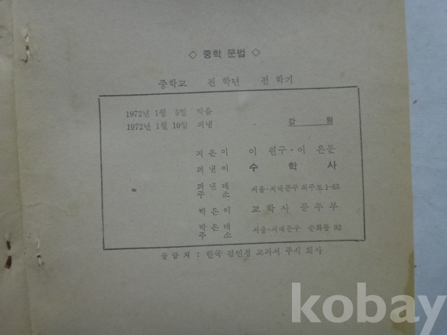 (표준) 중학 문법 - 전학년 전학기 (1972년, 이완구, 이은문 저, 수학사)