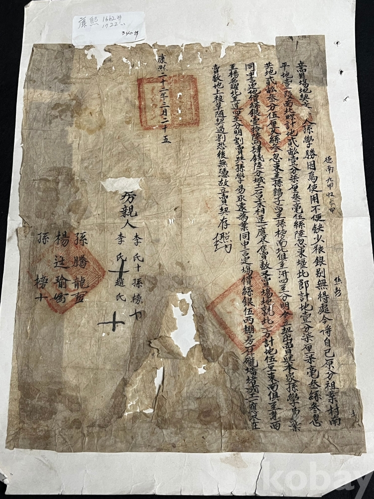 문서 중앙에 “康熙二十二年三月二十五”라는 명확한 연대 기록이 확인되며,