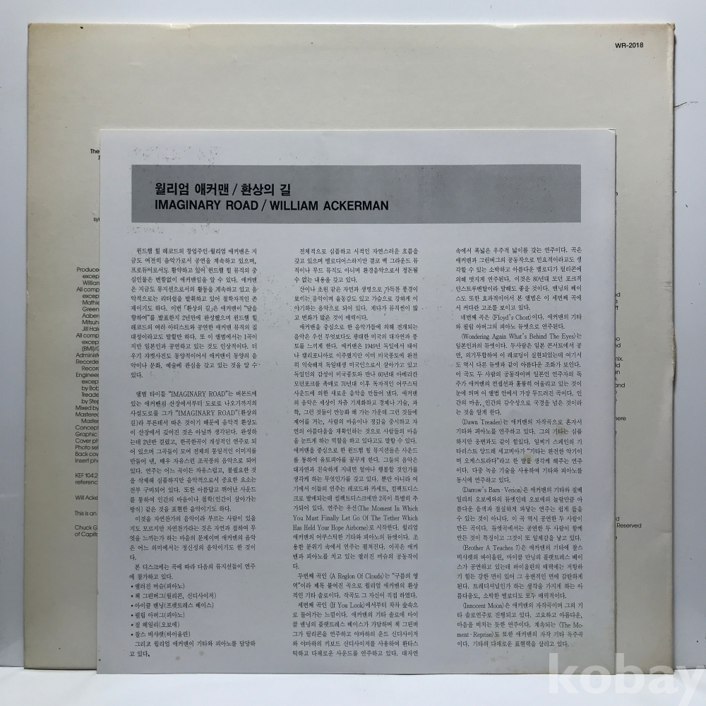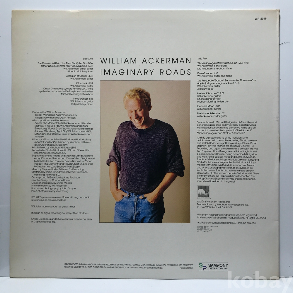 LP 86,050-22 WILLIAM ACKERMAN - IMAGINARY ROADS _ 자켓 EX+ 알판 EX+ 91 년 국내반