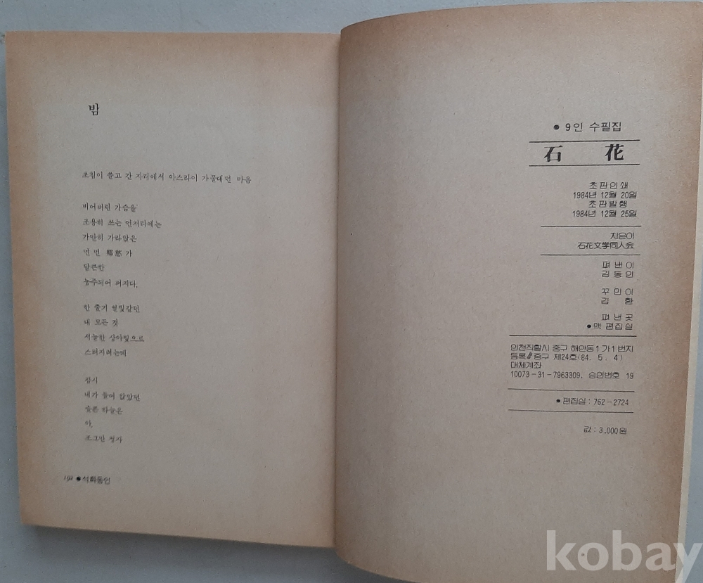 석화(9인수필집)-석화동인회 편 1984년초판 맥 발행