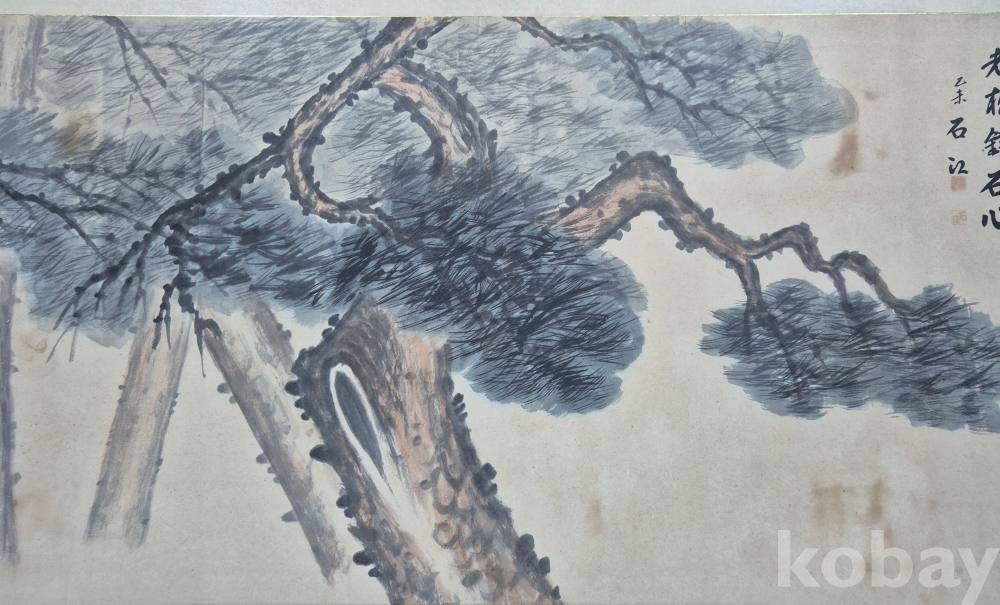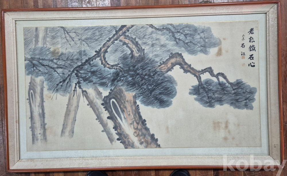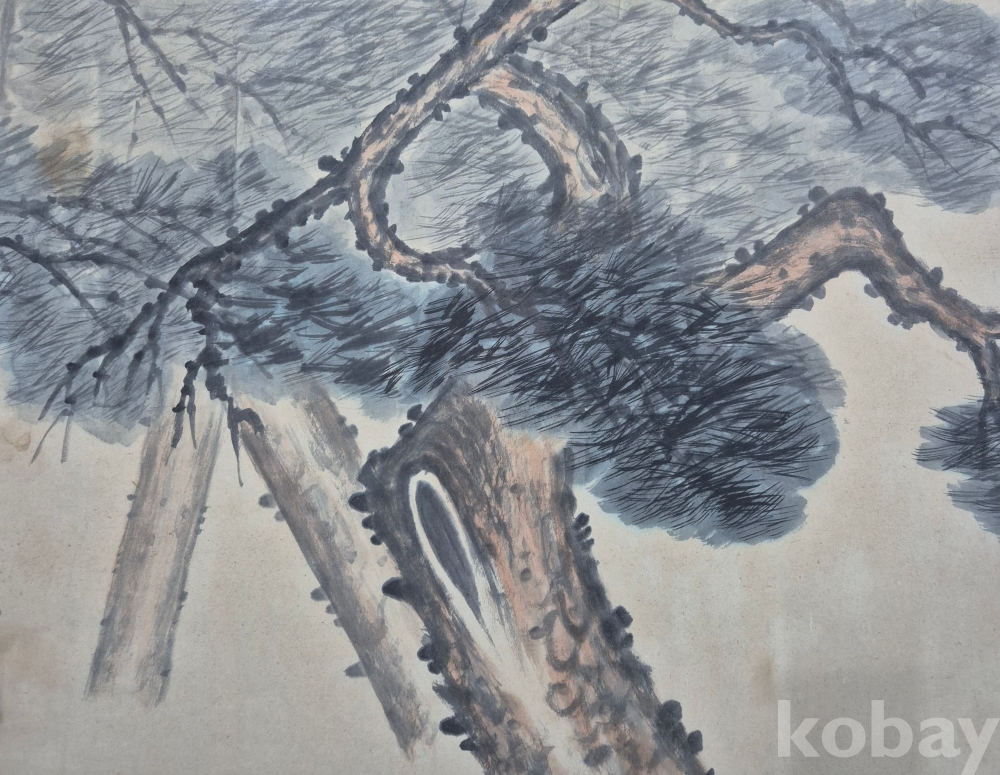 오래된 범상치 않은 필력의 상당한 수준의 화가분 작품 추정되는 전지크기 대형 사송도'이오니