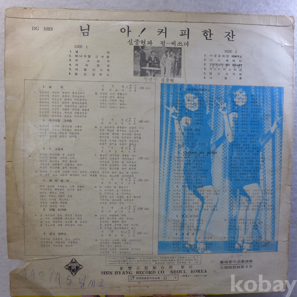 (귀한)LP음반: 펄씨스터즈의 A면"떠나야 할 그사람", "커피한잔"B면 "신중현 연주곡"등 수록앨범