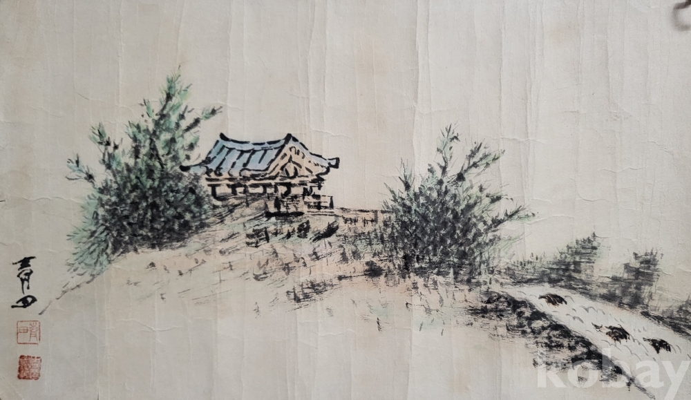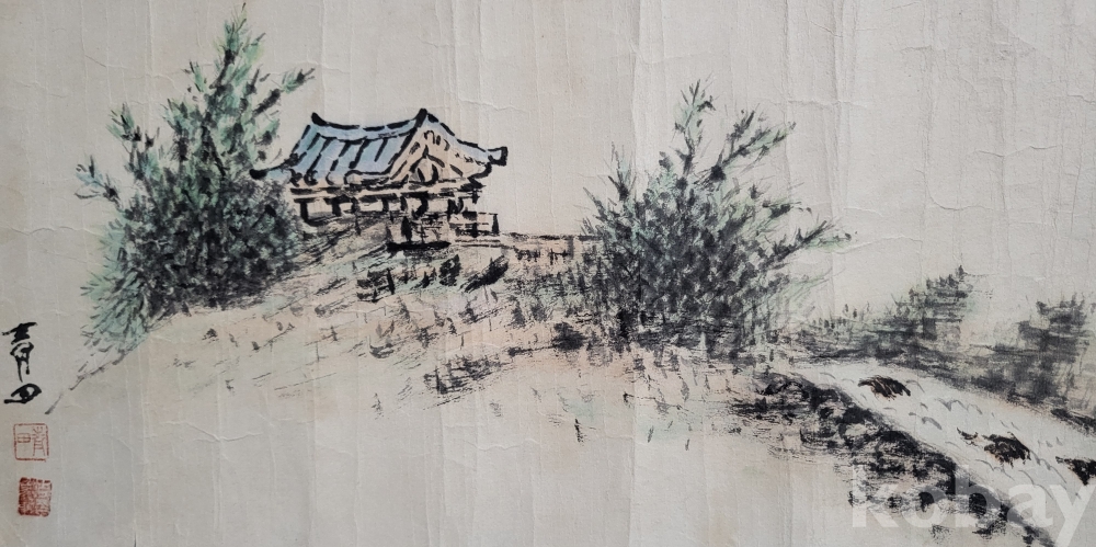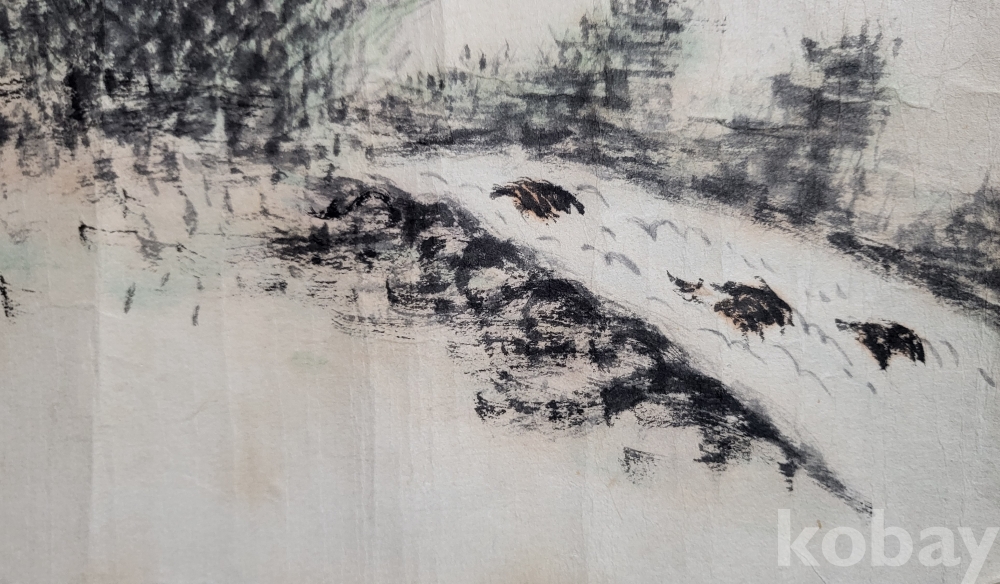 청전 이상범(靑田 李象範) 수결이 보이는 미감정 산수화입니다,