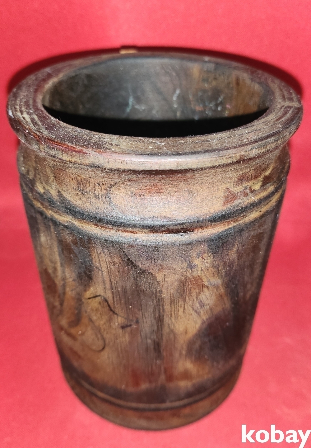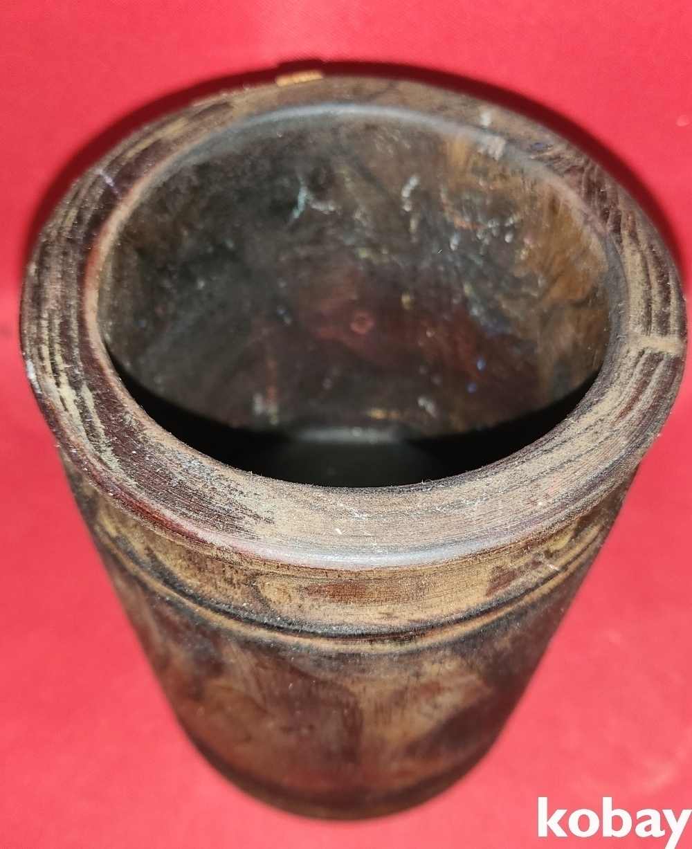 작가 사인이 보이는 대나무(竹) 문양 나무 필통입니다,