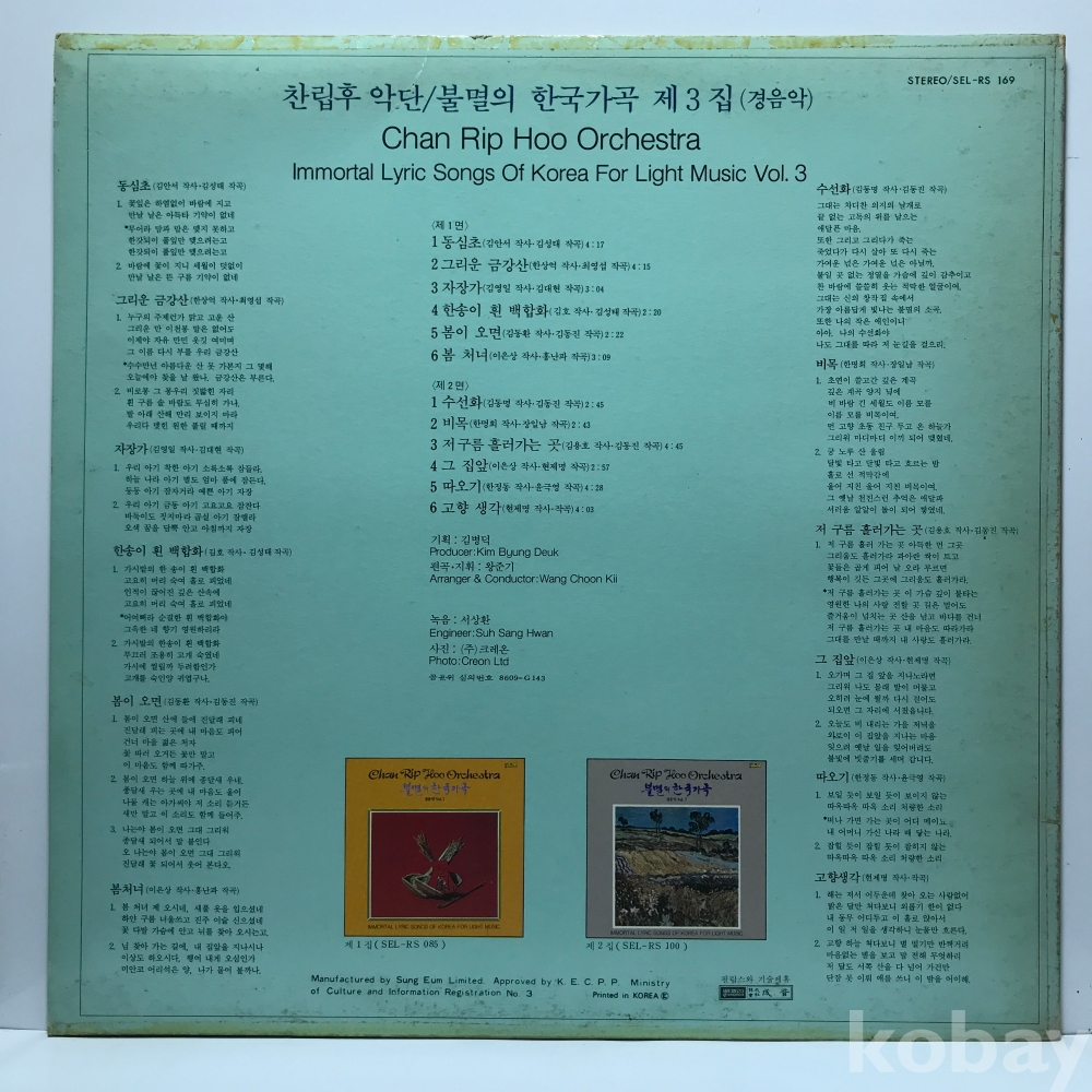 LP 86,050-18 찬립후 오케스트라 - 불멸의 한국가곡 _ 자켓 EX 알판 EX+ 86 년 국내반
