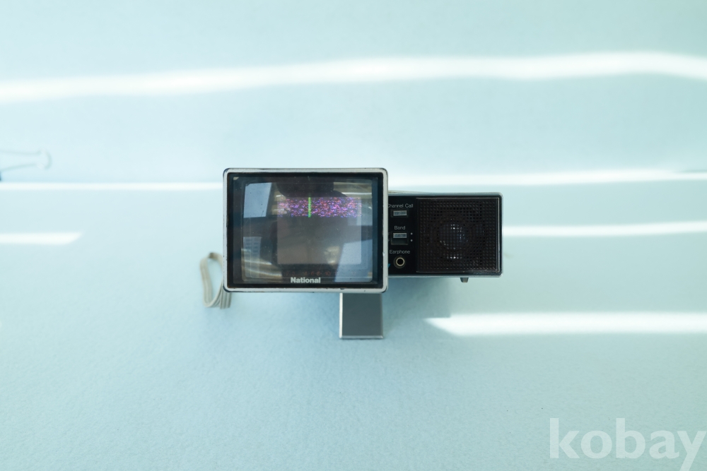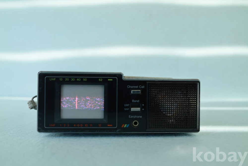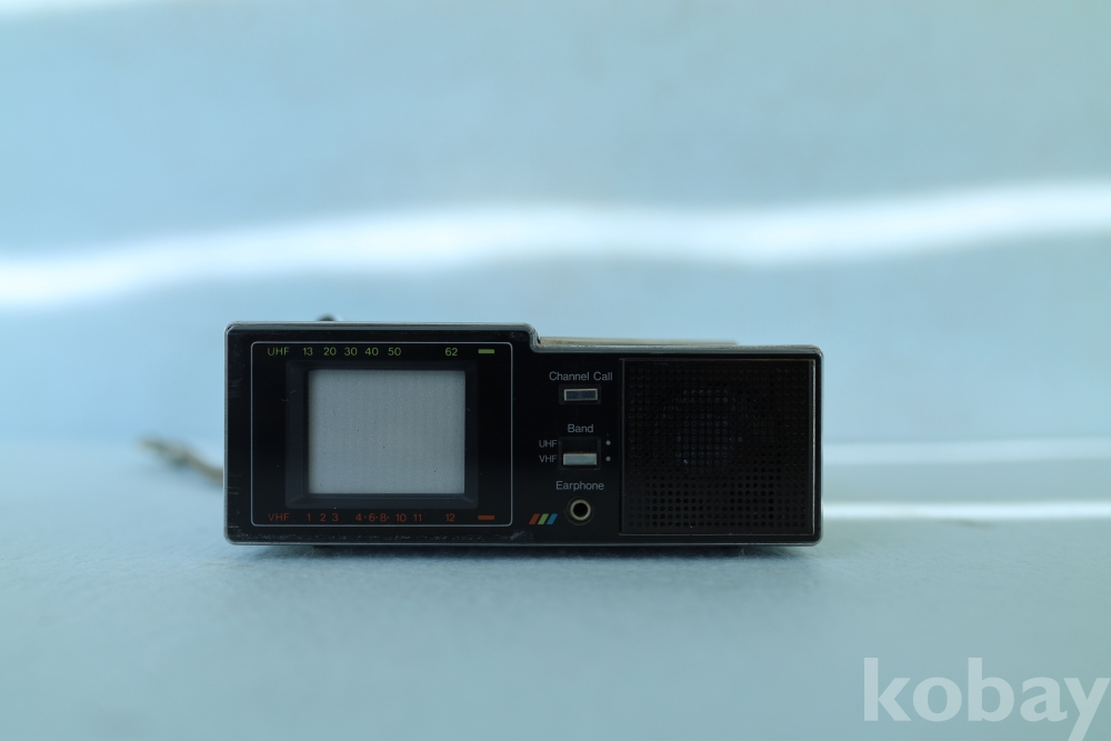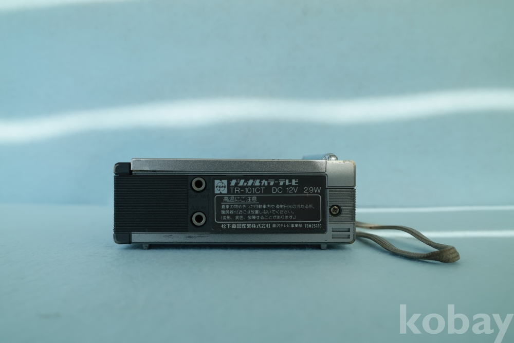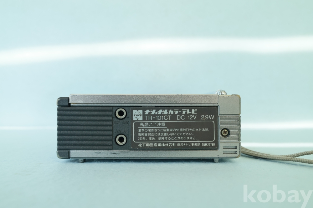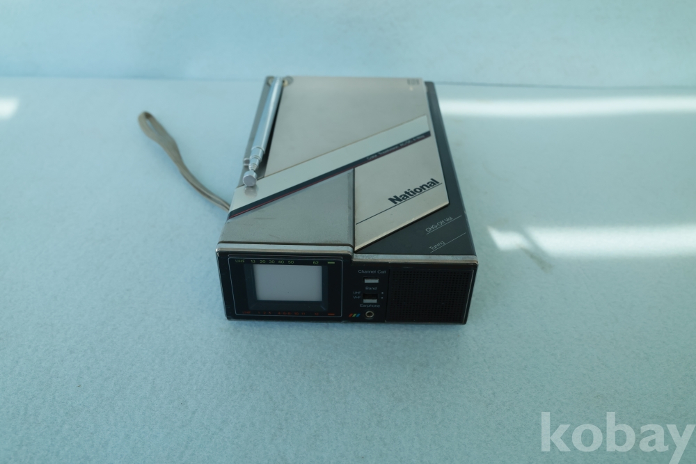 내셔널(National)사의 명기, 포터블 컬러 TV (모델명: TR-101CT)입니다. 1980년대 초반에 출시된 제품으로, 당시 기술력의 집약체라 불리던 손바닥만 한 사이즈의 컬러 브라운관 모델입니다.