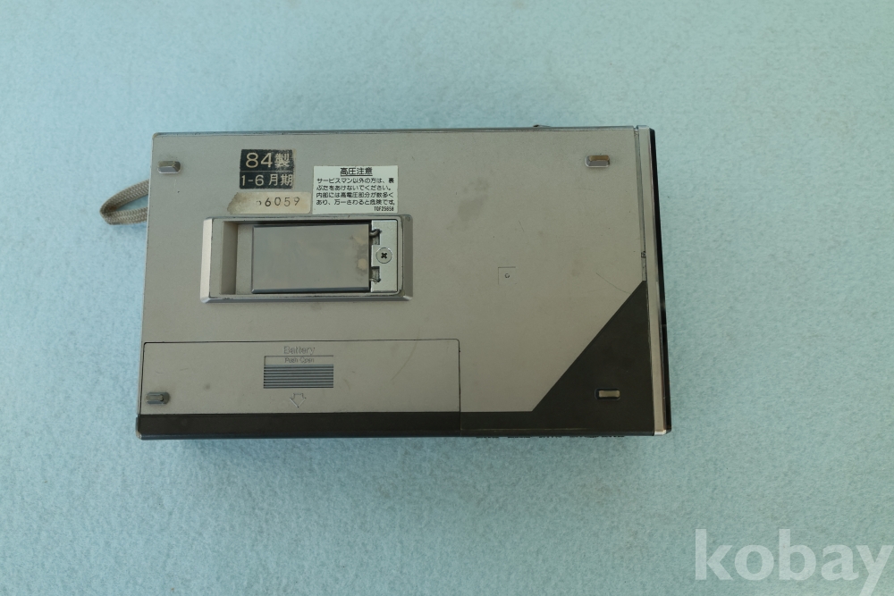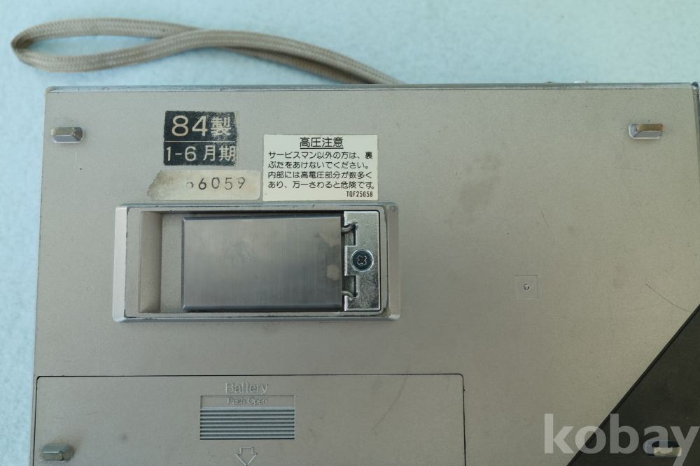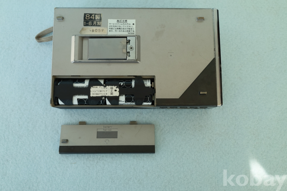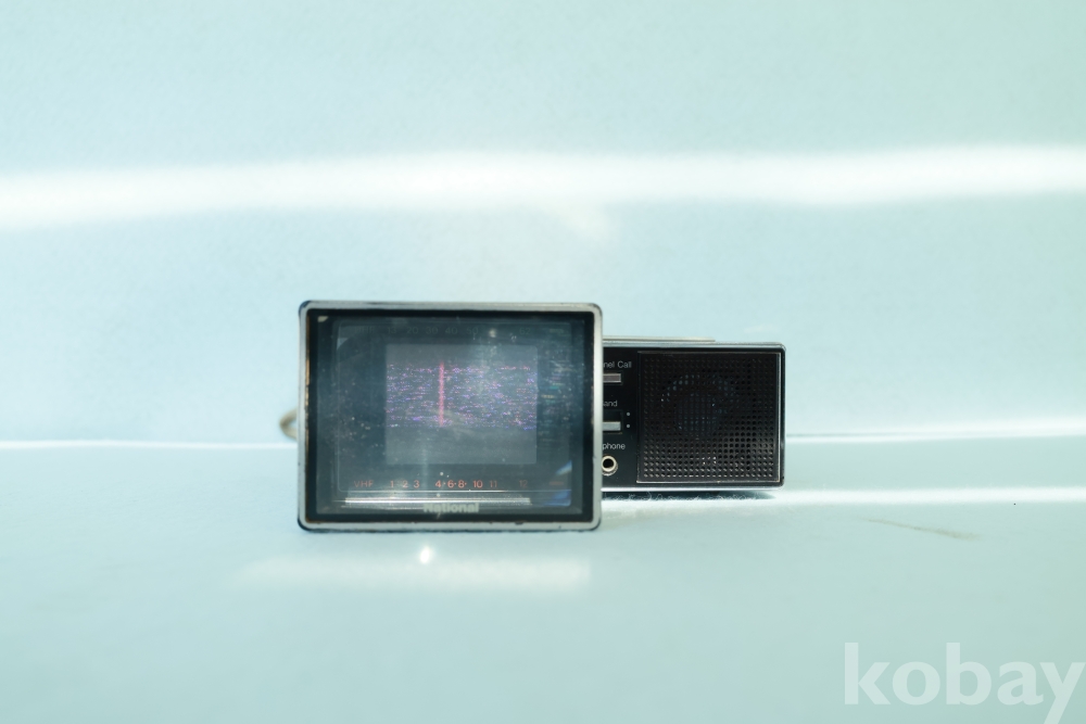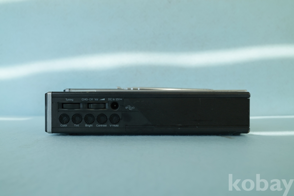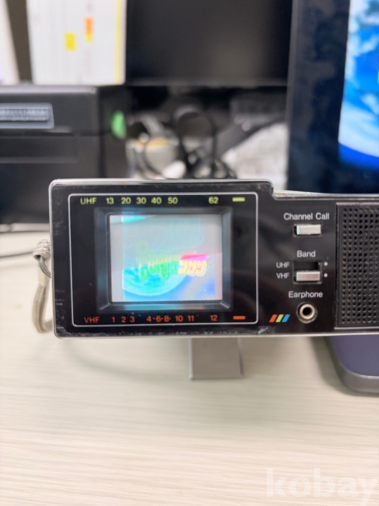 내셔널(National)사의 명기, 포터블 컬러 TV (모델명: TR-101CT)입니다. 1980년대 초반에 출시된 제품으로, 당시 기술력의 집약체라 불리던 손바닥만 한 사이즈의 컬러 브라운관 모델입니다.