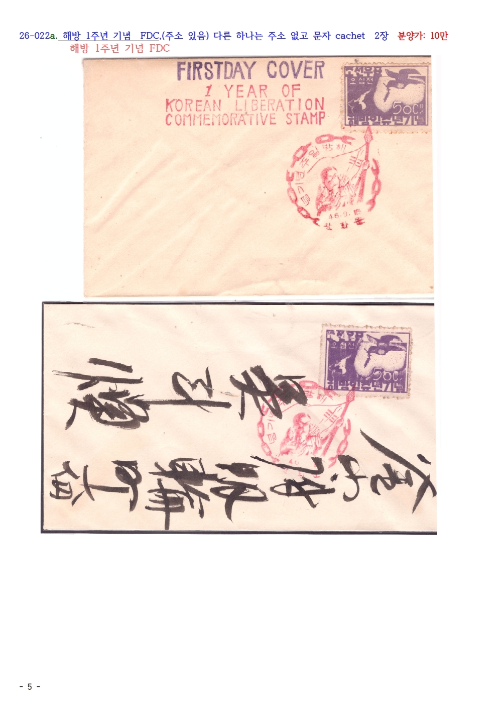 해방 1주년 기념, 해방 1주년 기념 우표 FDC
