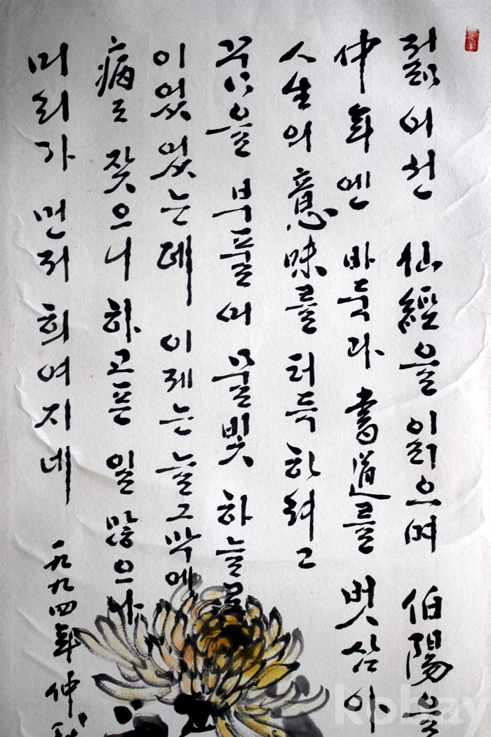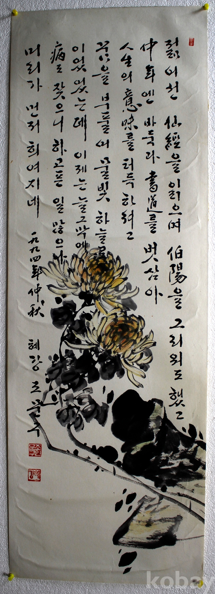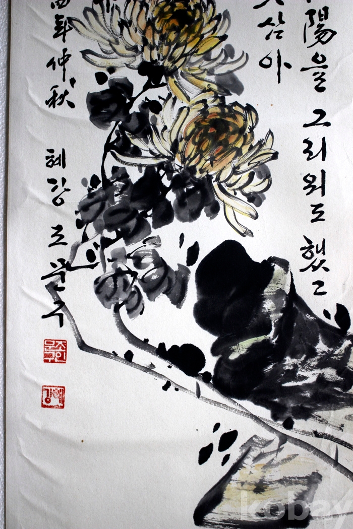 서예가이자 교육자인 혜강 조문구의 詩畵 작품 - 국화와 시