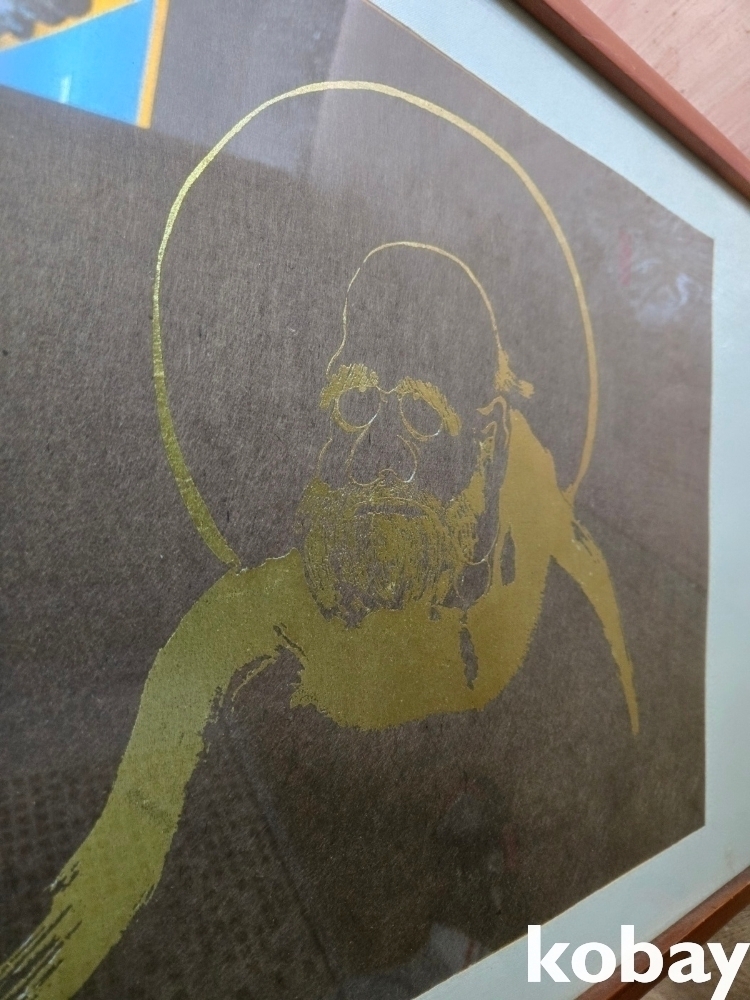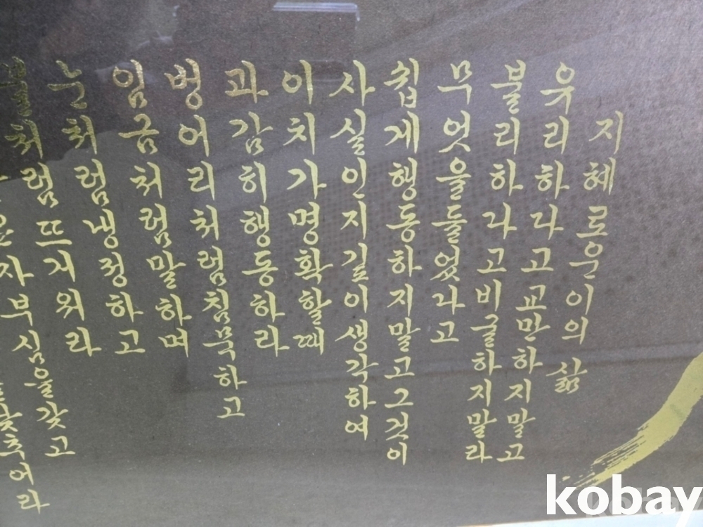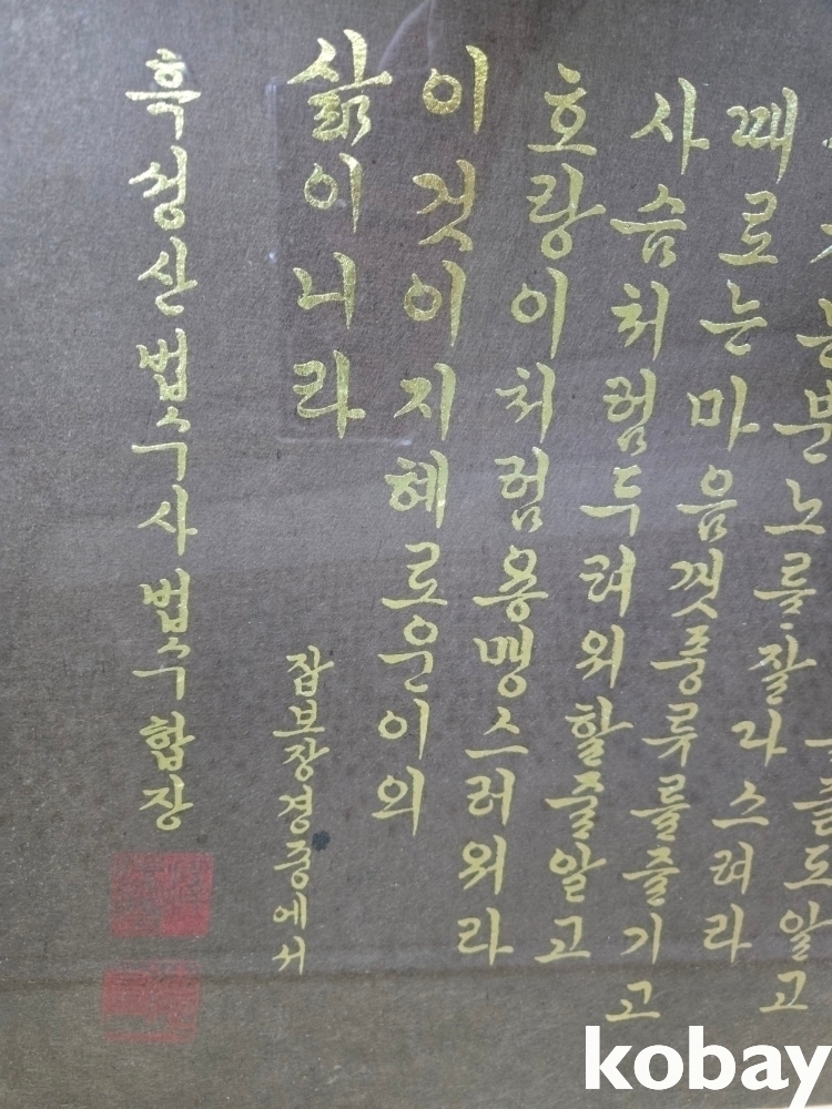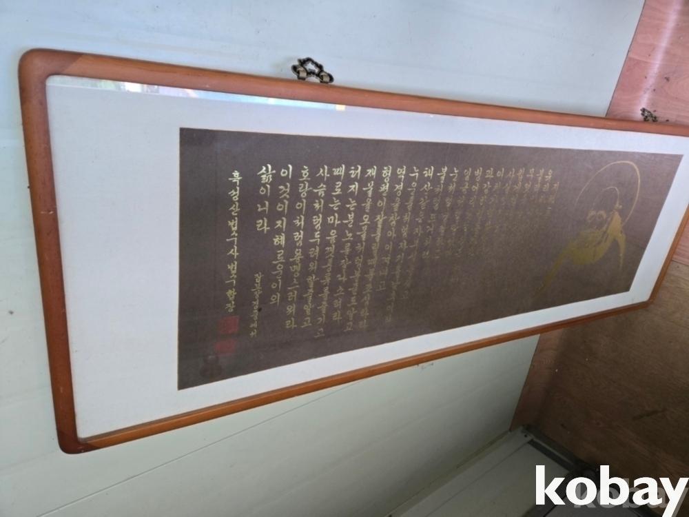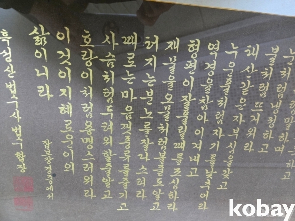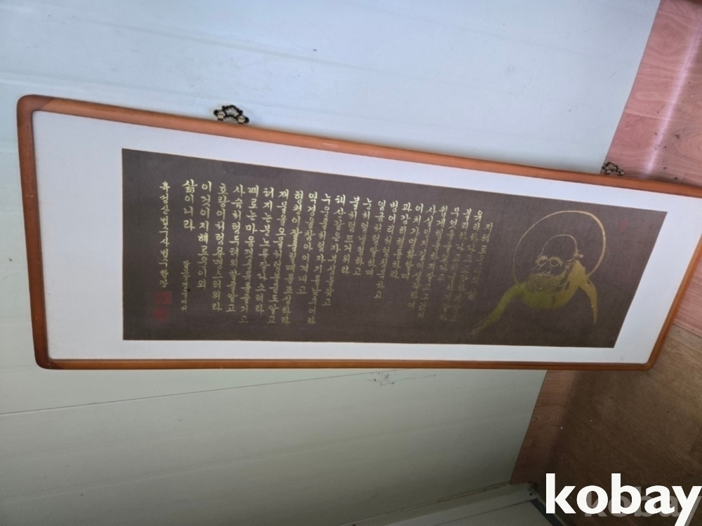 글분칠로 글씨와 달마 그림이 있는 액자 입니다.
