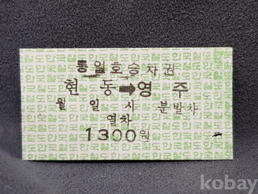 - 미사용 통일호 승차권 " 현동 ▶ 영주 " 1300원