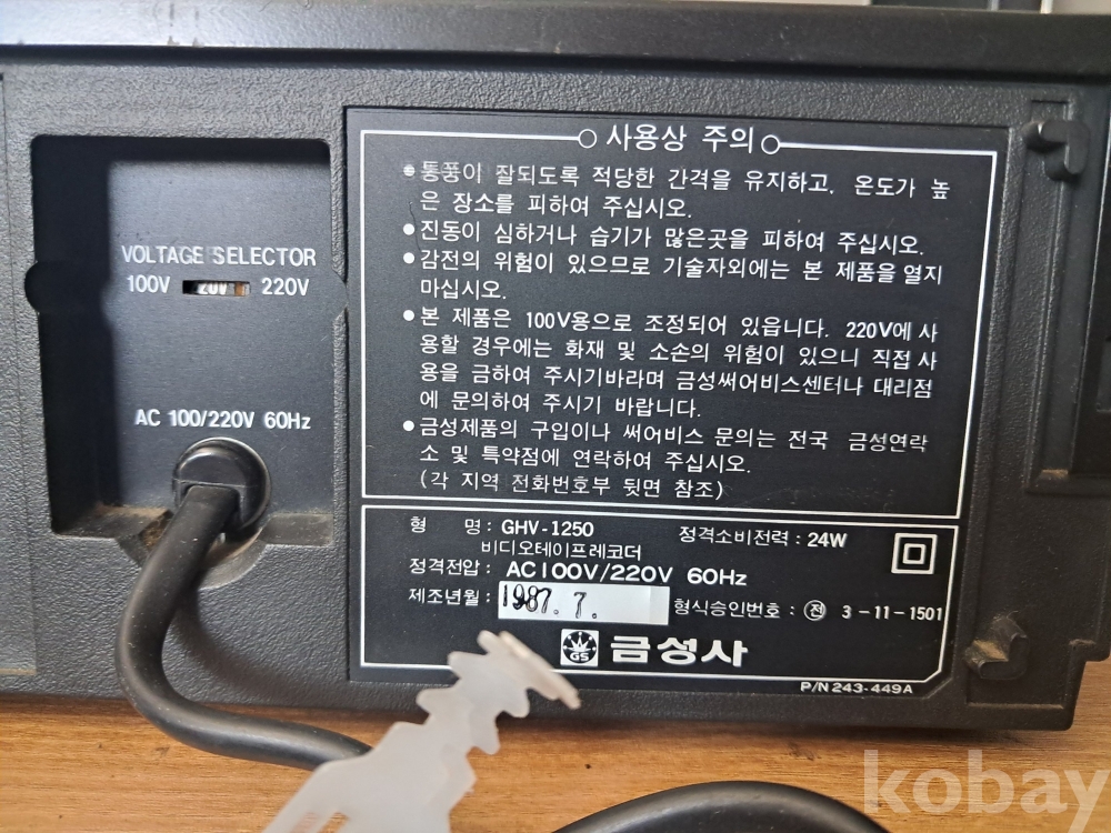 골드스타 금성 비디오 테이프 플레이어 GHV-1250