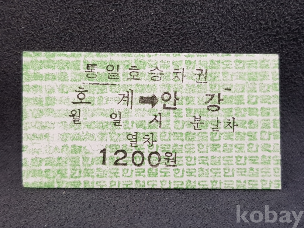 - 미사용 통일호 승차권 " 호계 ▶ 안강 " 1200원