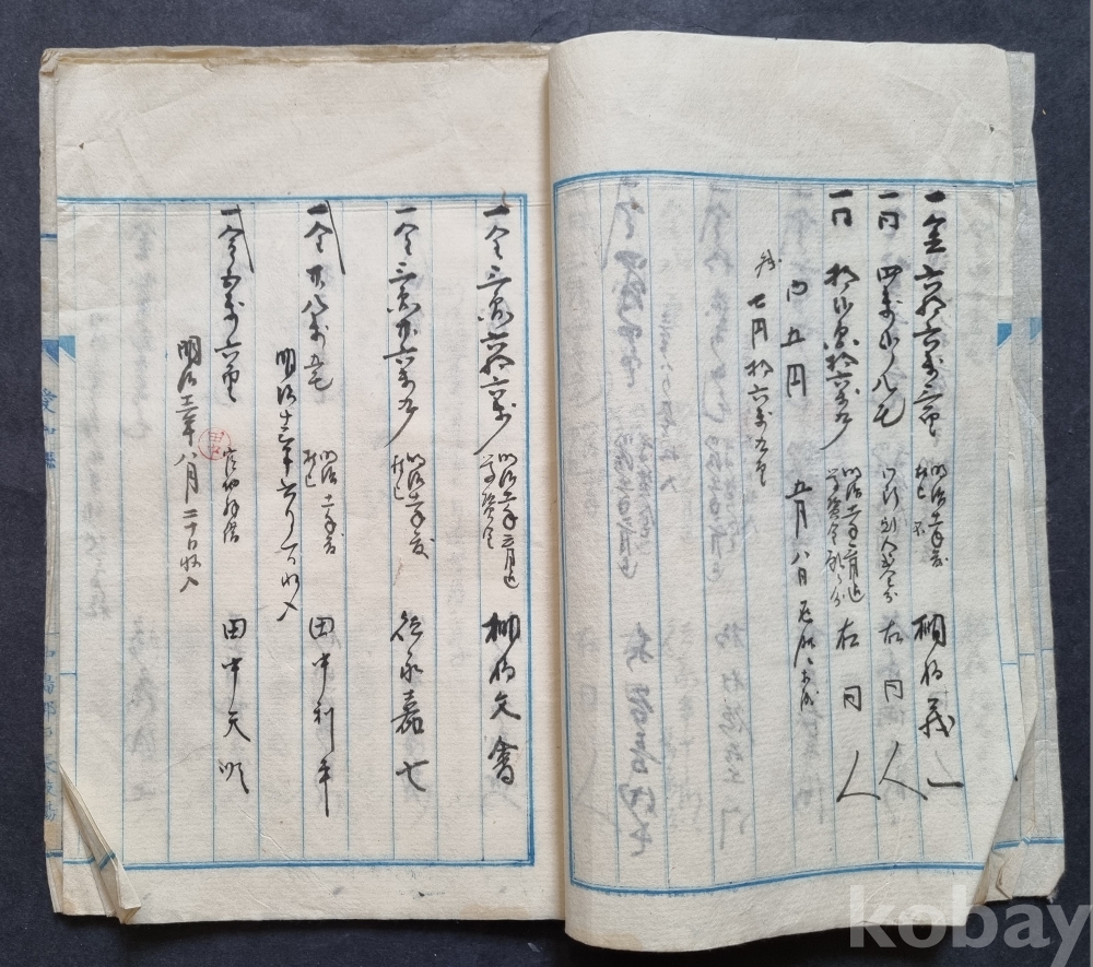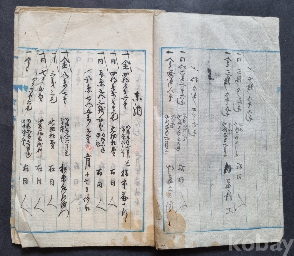 [희귀 골동] 메이지(明治) 시대 초서체 수기 장부/고문서 묶음 (100년 이상 경과)