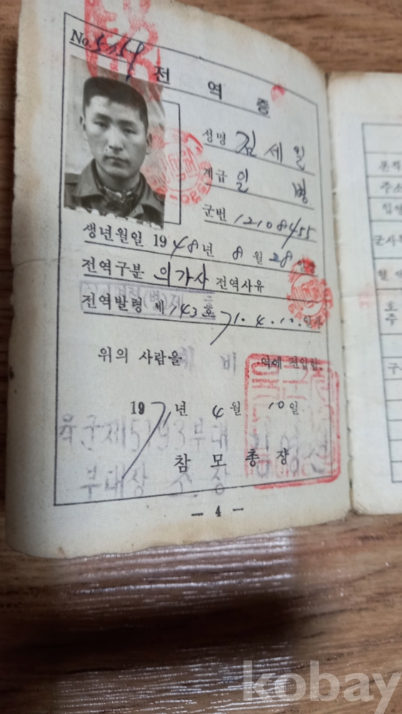 의가사 제대증과 향군 회원증 2매 일괄