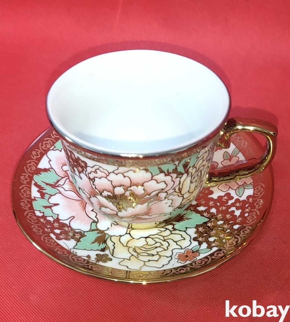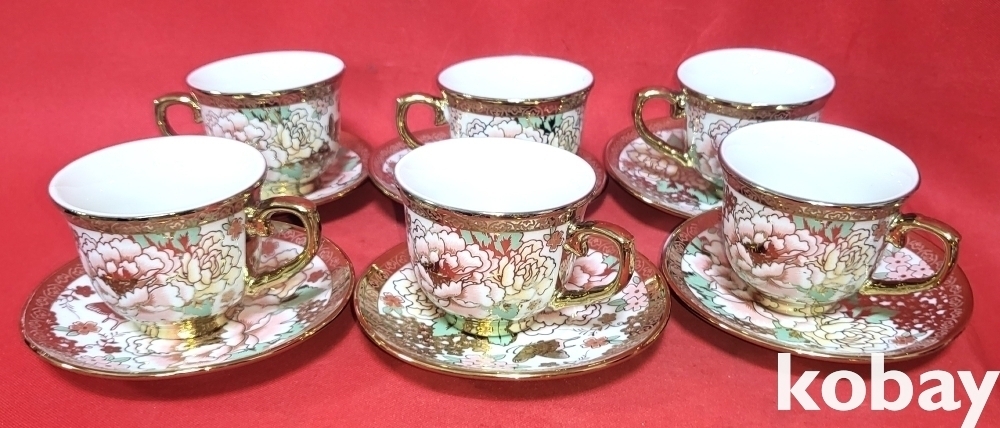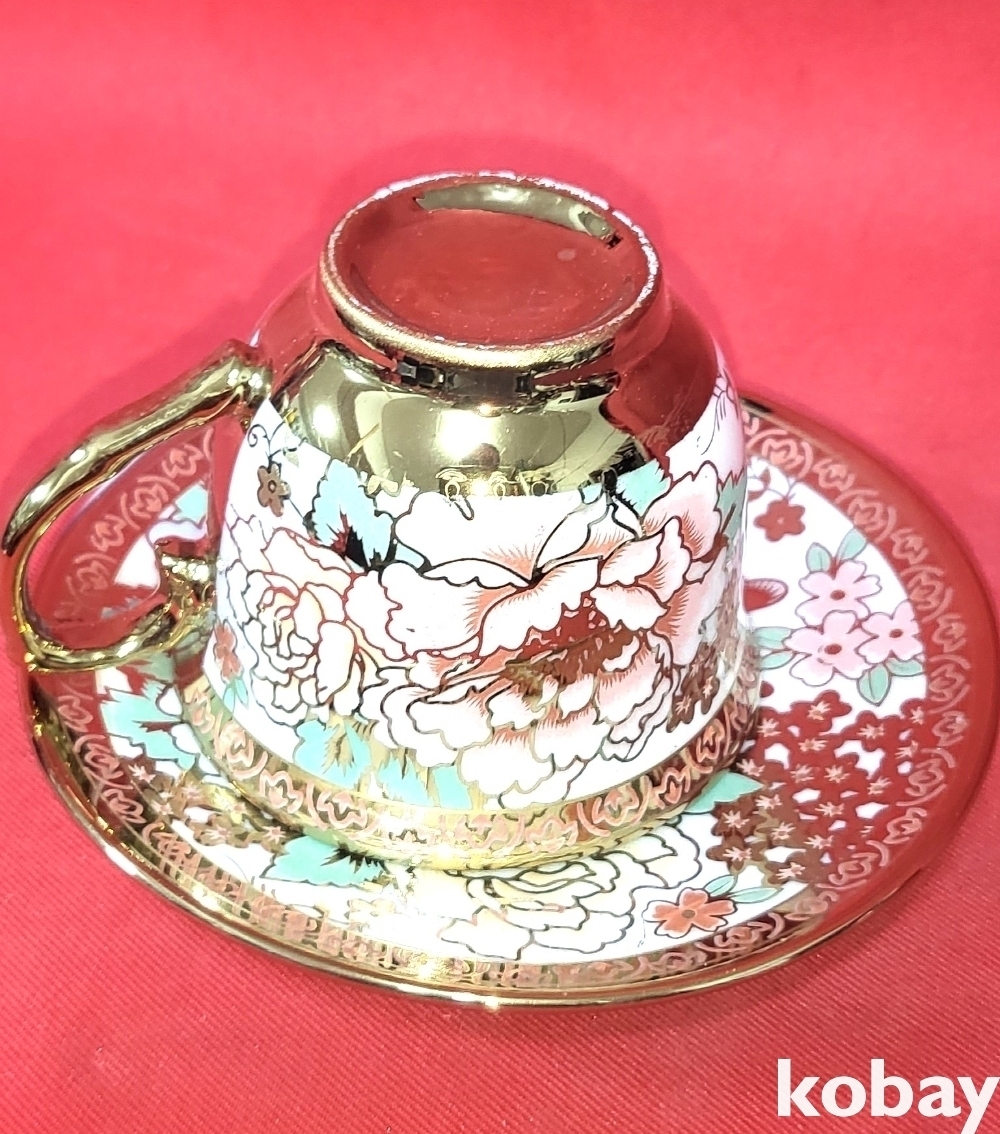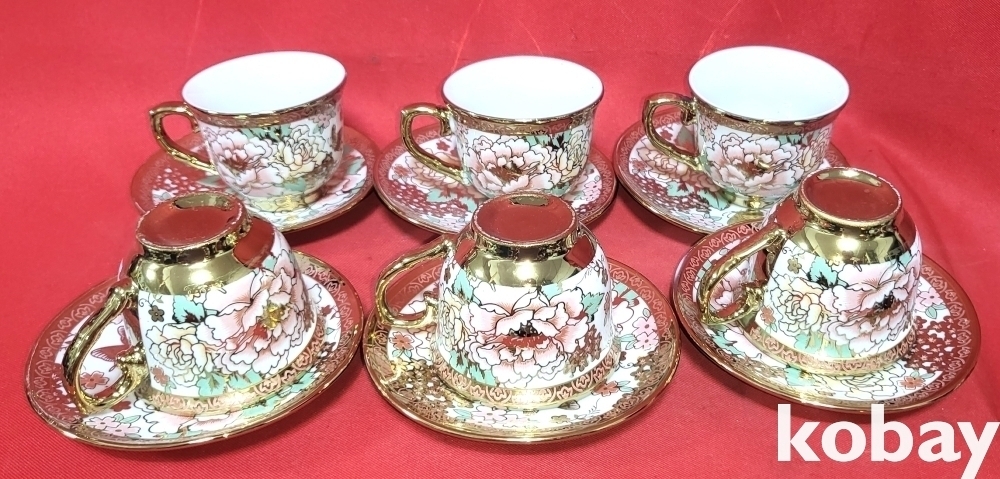 화려한 색감 목단 꽃과 나비 문양 6인용 다기셑트입니다,