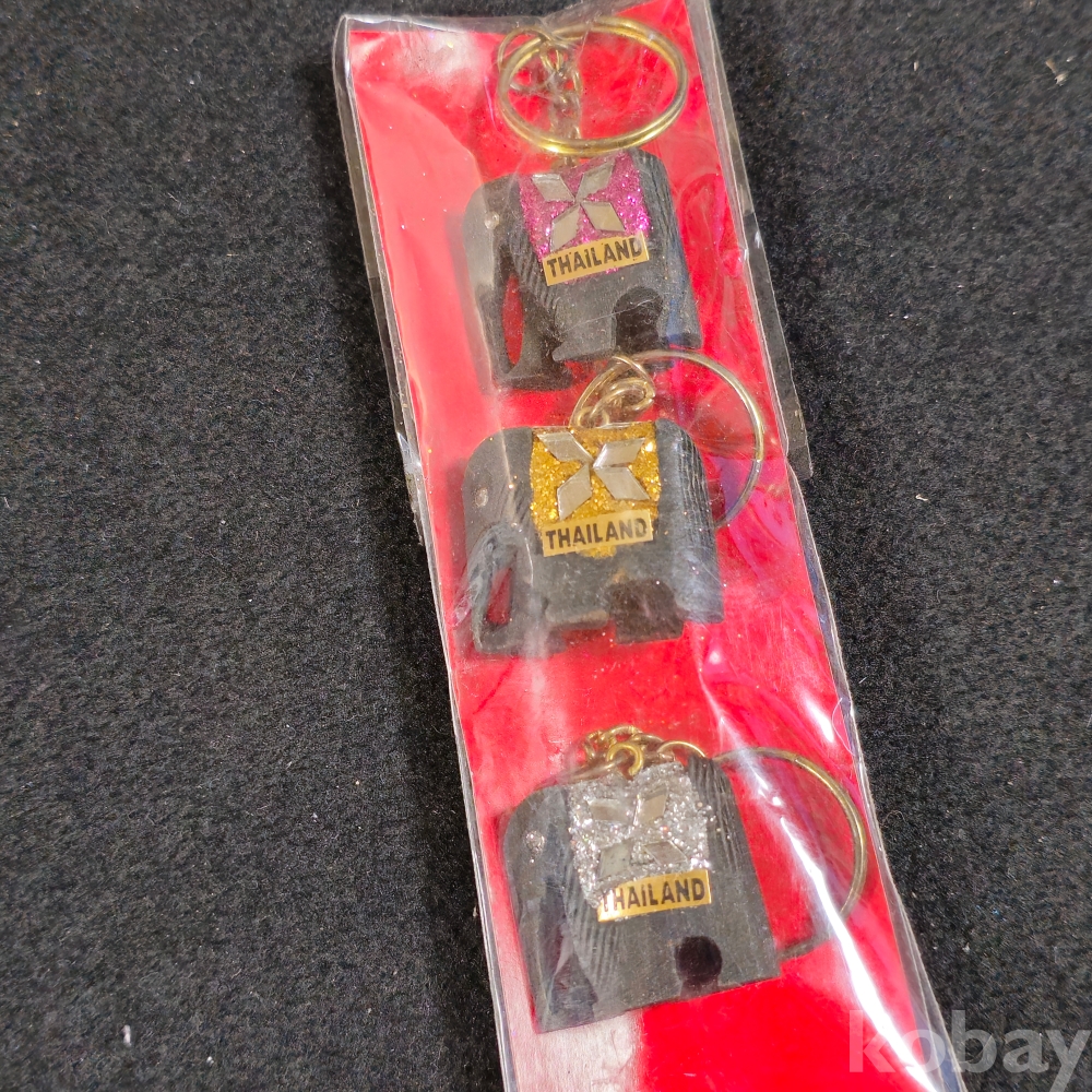 (((관광기념품/키홀더/키링/열쇠고리/가방걸이))) 오래전 태국관광기념 나무로만든 코끼리 키홀더 3종