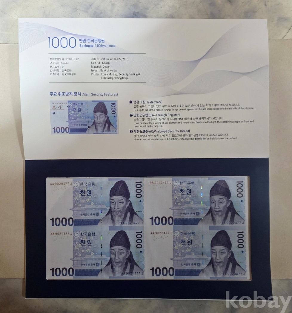 -대한민국 3차 천원 4면부 연결권 지폐첩 입니다.