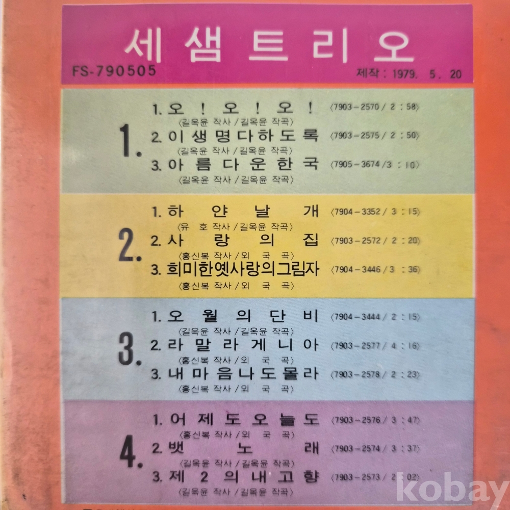 [8트랙 테이프 기획전] [미개봉] [세샘트리오] 길옥윤 작품집 / 오오오! 하얀날개 어제도 오늘도 外