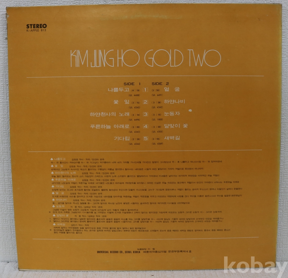 | 자켓상태 | EX : 약간의 마모, 모서리 찢김 존재 | 음반상태 | EX : 재생에 영향 없는 가벼운 기스 존재 | 발매정보 | 초반 | 가사지여부 | 유 |