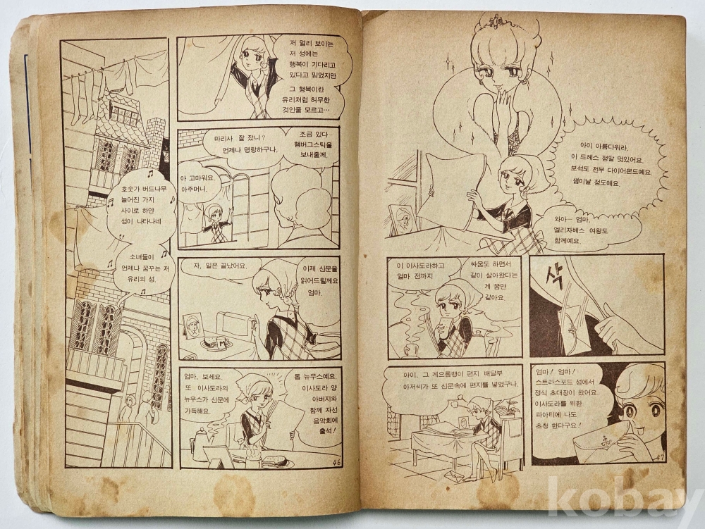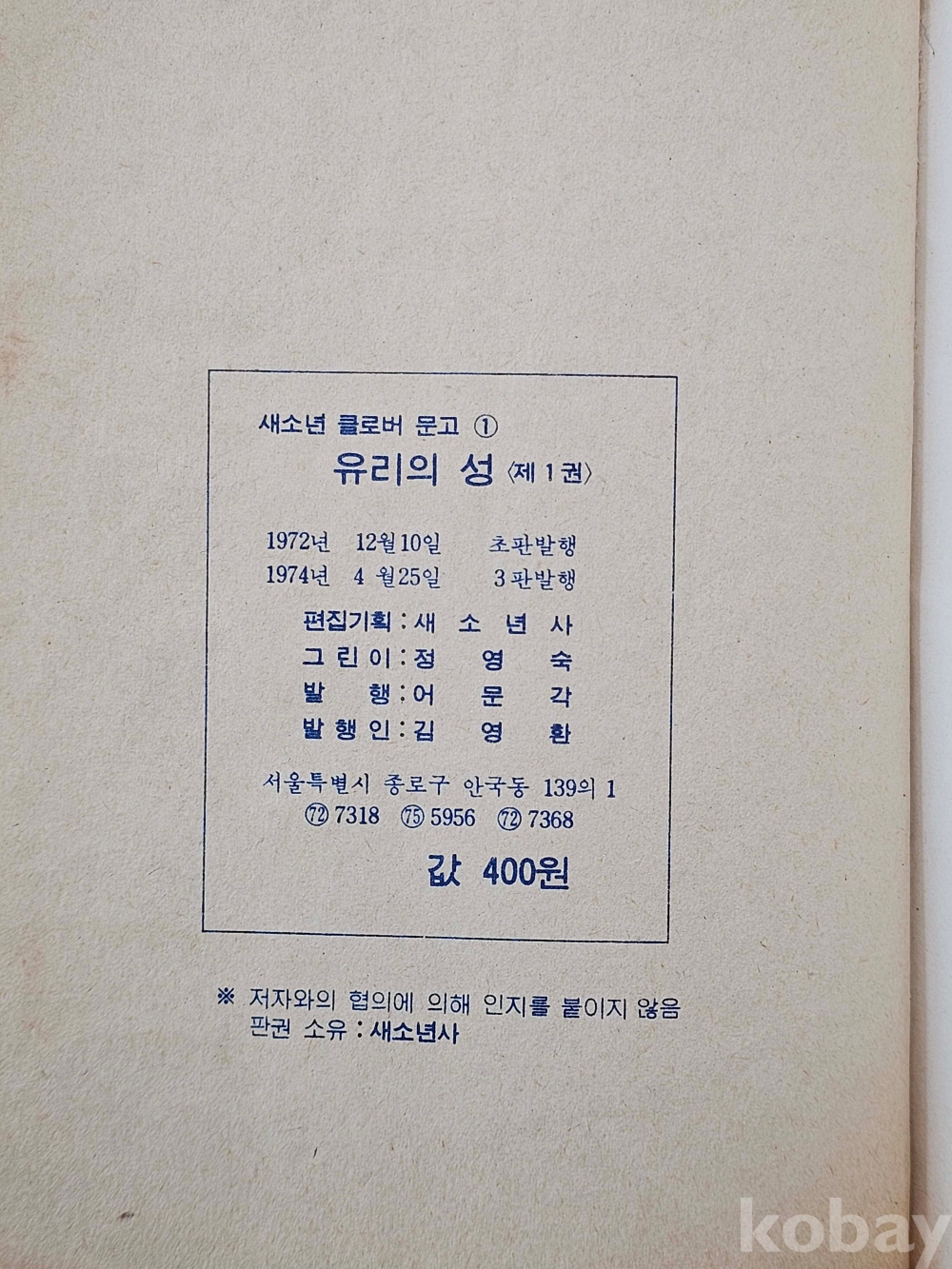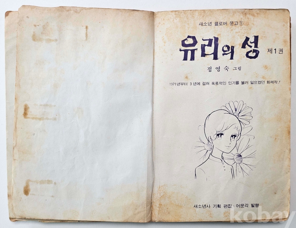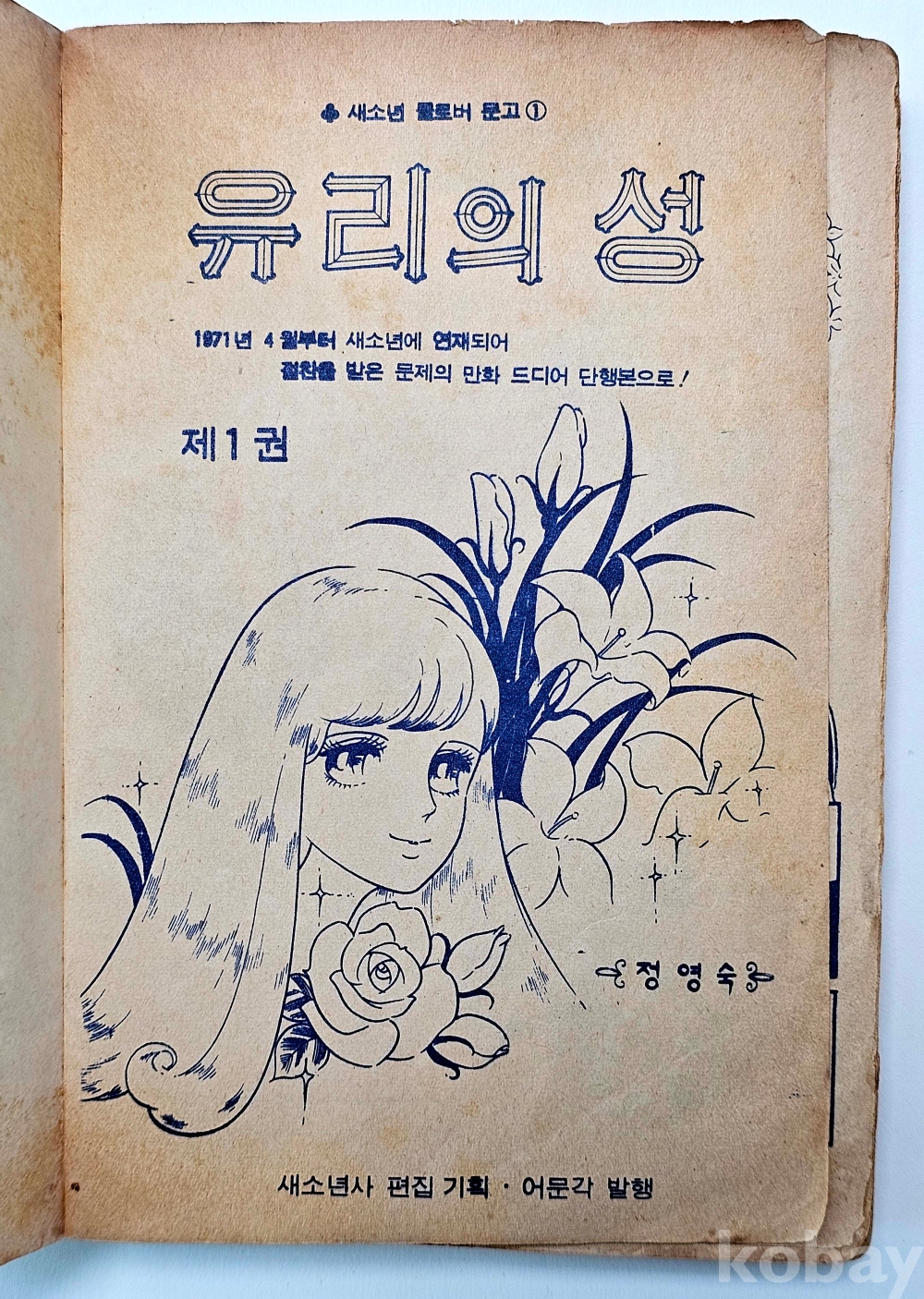 물 품 명 | 유리의 성 1편 / 정영숙 만화 / 1974년 / 클로버문고 초기 버전 표지 / 어문각 |
