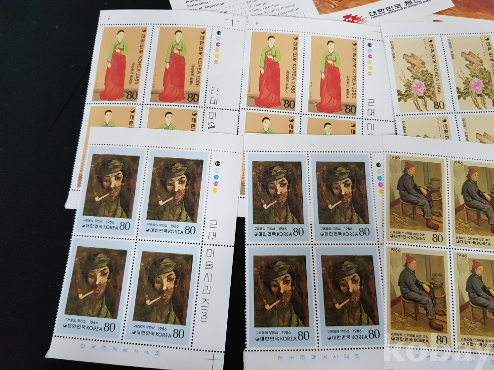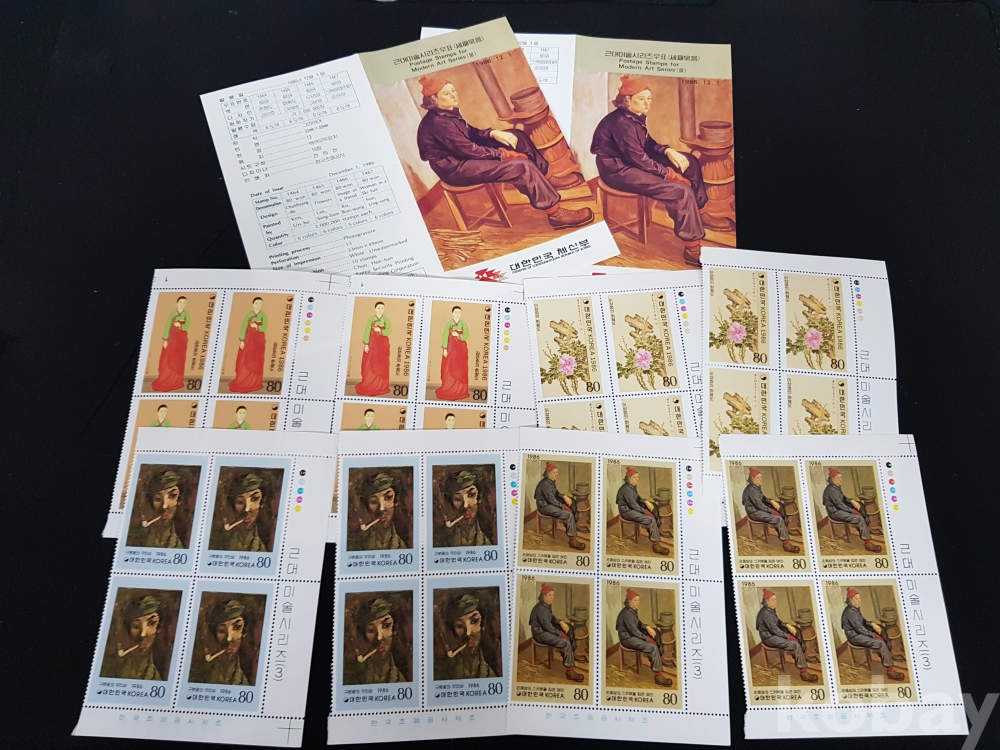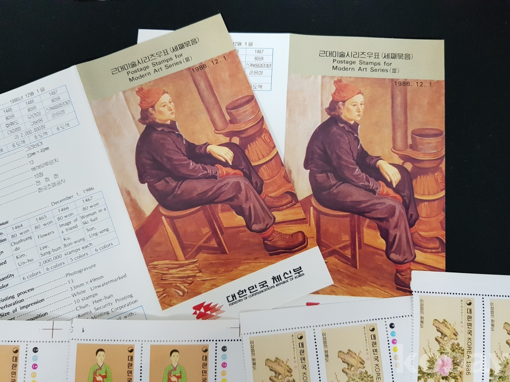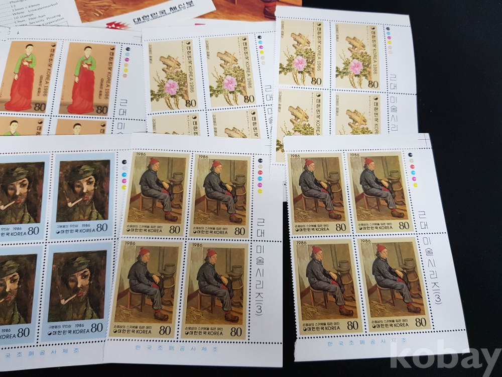 - 1986년 근대미술 시리즈 제 3집 안내카드, 초일봉피, 명판 등 모음