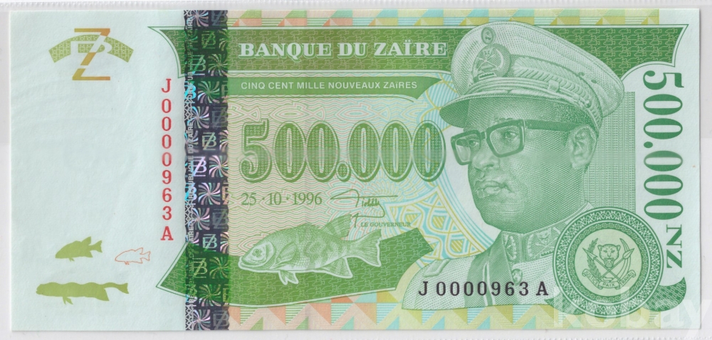 나라 : 자이레 (콩고) 액면 : 500,000 자이레