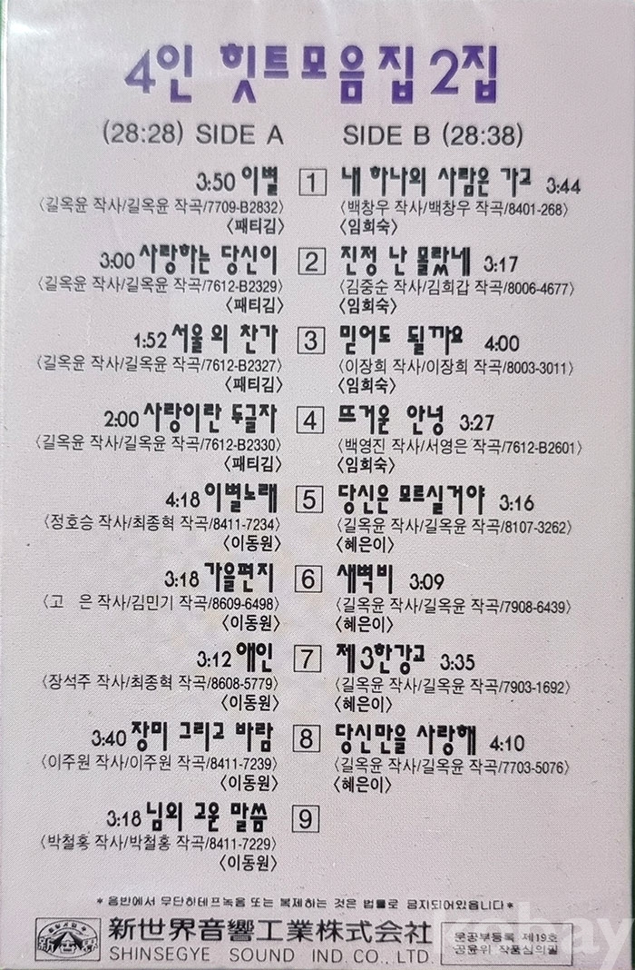 4인 가수 히트곡 모음 2집 입니다....
